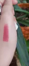 رنگش یه قرمز جذابه که احساس میکنم به همه رنگ پوستی میاد ، مخملیه و چسبندگی نداره روی لب چرب نیست ماته تقریبا ، حس خشکی هم نداشتم باهاش ، عکسشو میزارم که بهتر بتونین رنگ واقعیش رو ببینین