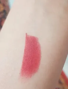 گوشتی با ته رنگ صورتی ؛ بوی ملایم و دوست داشتنی شبیه به آدامس خرسی داره. رنگش تقریباً گوشتی هست با کمی ته رنگ صورتی. اولش که میزنید خیلی چربه اما پس از چند دقیقه چربیش جذب میشه و دیگه روغنی نیست. جلوه ش روی لب درخشان هست و اصلاً مات نیست. با خوردن و یا آشامیدن کامل از بین نمیره و یه ته رنگ صورتی حالت تینت رو لبتون باقی میمونه. و در آخر خوبیش اینه که پارابن نداره روی هم رفته رژ خوب و با کیفیتی هست. تلاش کردم تا عکسی بگذارم که رنگهاشو به صورت واقعی نشون بده