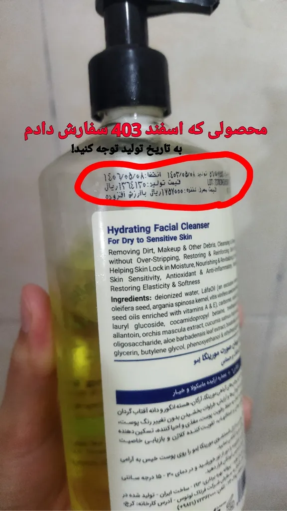 یه مورد دیگه که توجه مو جلب کرد این بود : قبل ازین سفارش من اخرین بار اوایل اسفند ۴۰۳ ژل رو سفارش دادم که تاریخ تولیدش مرداد ۴۰۳ بود، اما الان ک اواسط فروردین ۴۰۴ هستیم محصولی که برام ارسال شده، تاریخ تولیدش تیر ۴۰۳ بوده!!! میتونید توی تصاویر ببینید