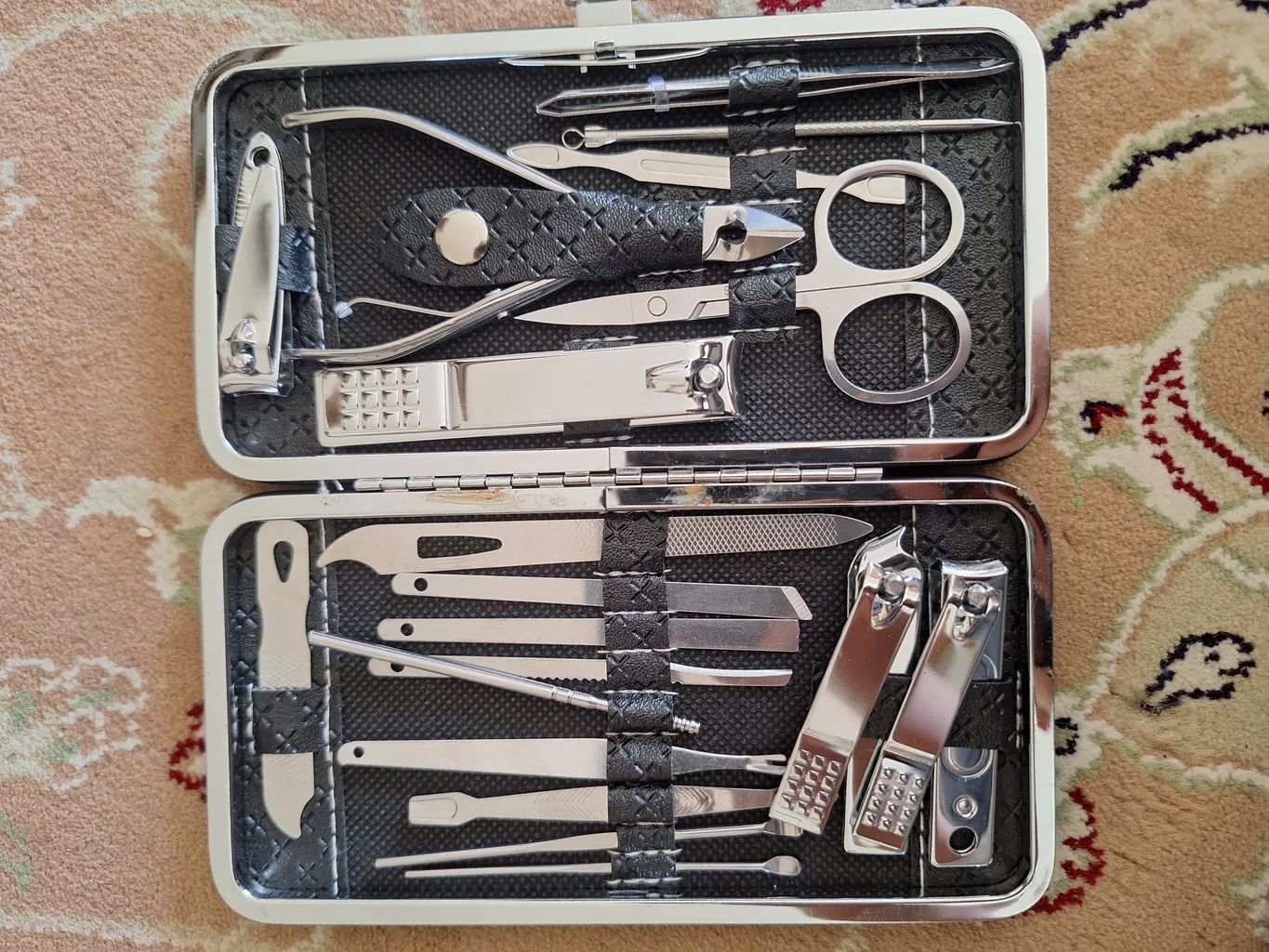 - ⬤ تعداد ابزارها : تعداد ابزارهای موجود در ست مانیکور و پدیکور باید متناسب با نیازهای روزمره باشد. خریداران به ستهای کامل و جامع توجه دارند و از داشتن ابزارهای کافی برای انجام کارهای مختلف راضی هستند. ستهایی که شامل ابزارهای ضروری و کاربردی هستند، معمولاً بیشتر مورد توجه قرار میگیرند.