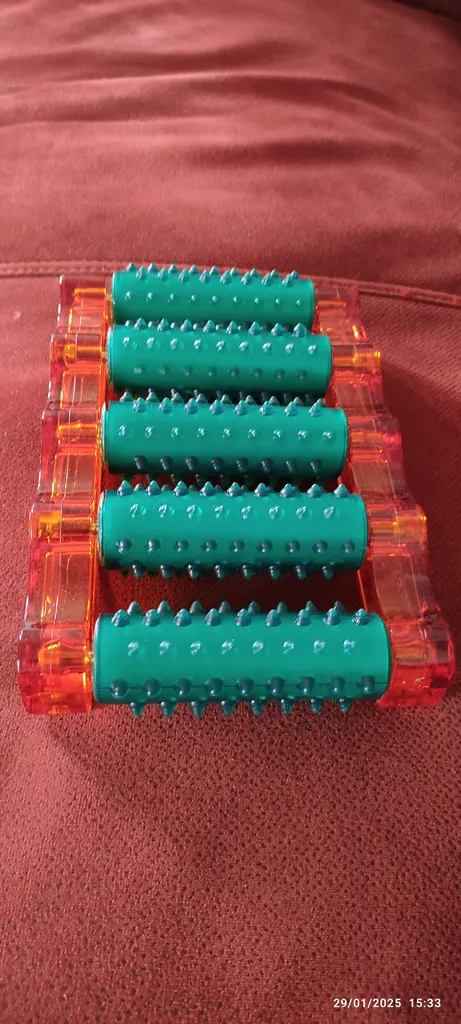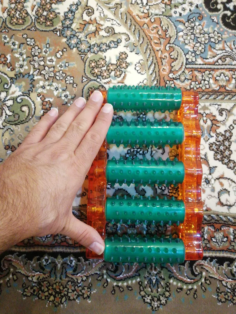 ماساژور کف پا ؛ برای ماساژ کف پا گرفتم کیفیت مواد به کار رفته خوب بود ولی جنس موادش انگار حالتی هستش که یکم فشار وارد بشه میشکنه. برای ماساژ کف پا خوب بود ولی زیاد استفاده کنی پاها از قسمت کشاله ران و ساق خسته میکنه