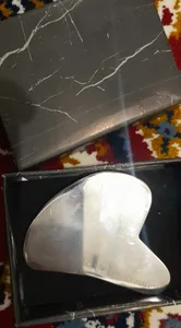گواشا یه تکنیک سنتیه که اگه روزانه حدودا پانزده دقیقه وقت بذارید و حتما قبلش از روغن مناسب پوستتون استفاده کنید دو الی سه هفته نتیجشو میزاره (کم شدن التهاب و پفی صورت و در زمان طولانی تر تغییر فرم صورت) و جنس استیلش واقعا با کیفیته و بنظرم نسبت به مدل های دیگه بهتره (حتما نیم ساعت قبل استفاده داخل یخچال بزارید)