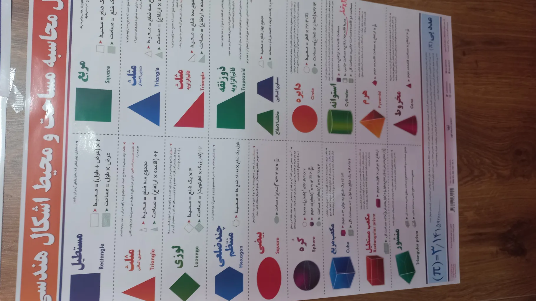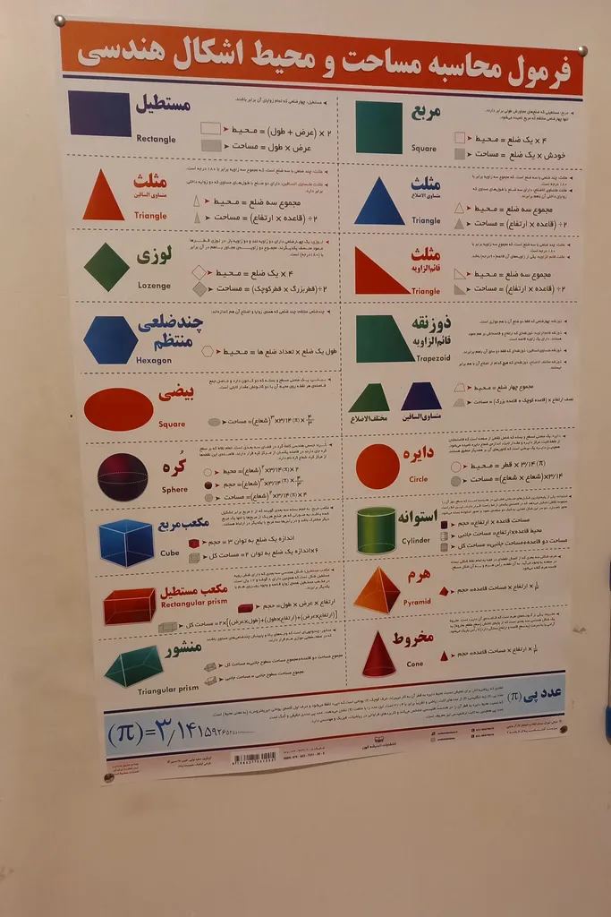 اگه واقعا پوستر رو ارسال کنن واقعا باارزشه و حتما بخرید تمام فرمول محیط و مساحت شکل ها داخلش هست و خیلی به درد بخور هست