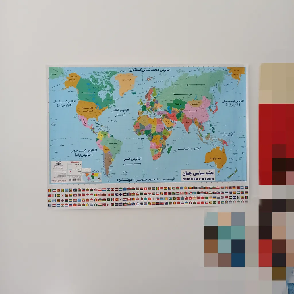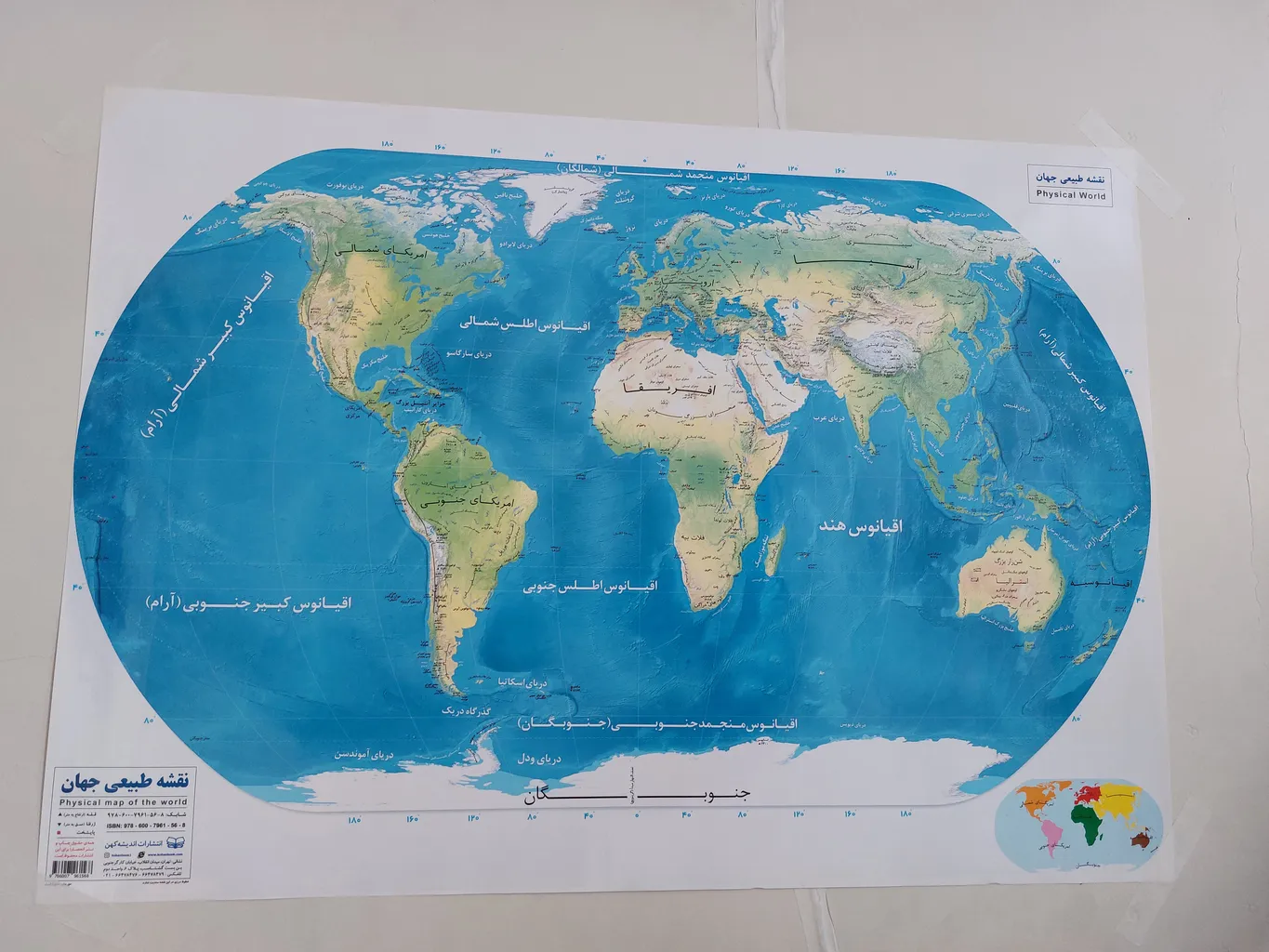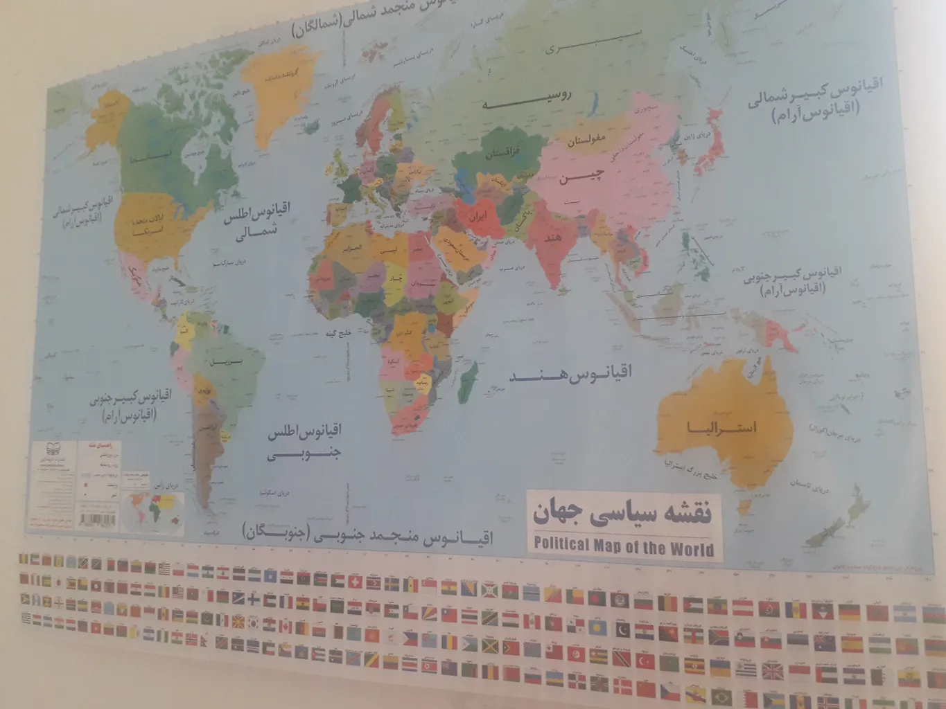 خریدار بدون نام : کاربردی و لازم ؛ امروز به دستم رسید.از زمان تحویل و بسته بندی کاملا راضیم. هیچ چروک، لکه و ناصافی ای روی نقشه وجود نداره.حدود کشور ها و اسم و پرچم هاشون کاملا واضحه و حرفی باقی نمی زاره