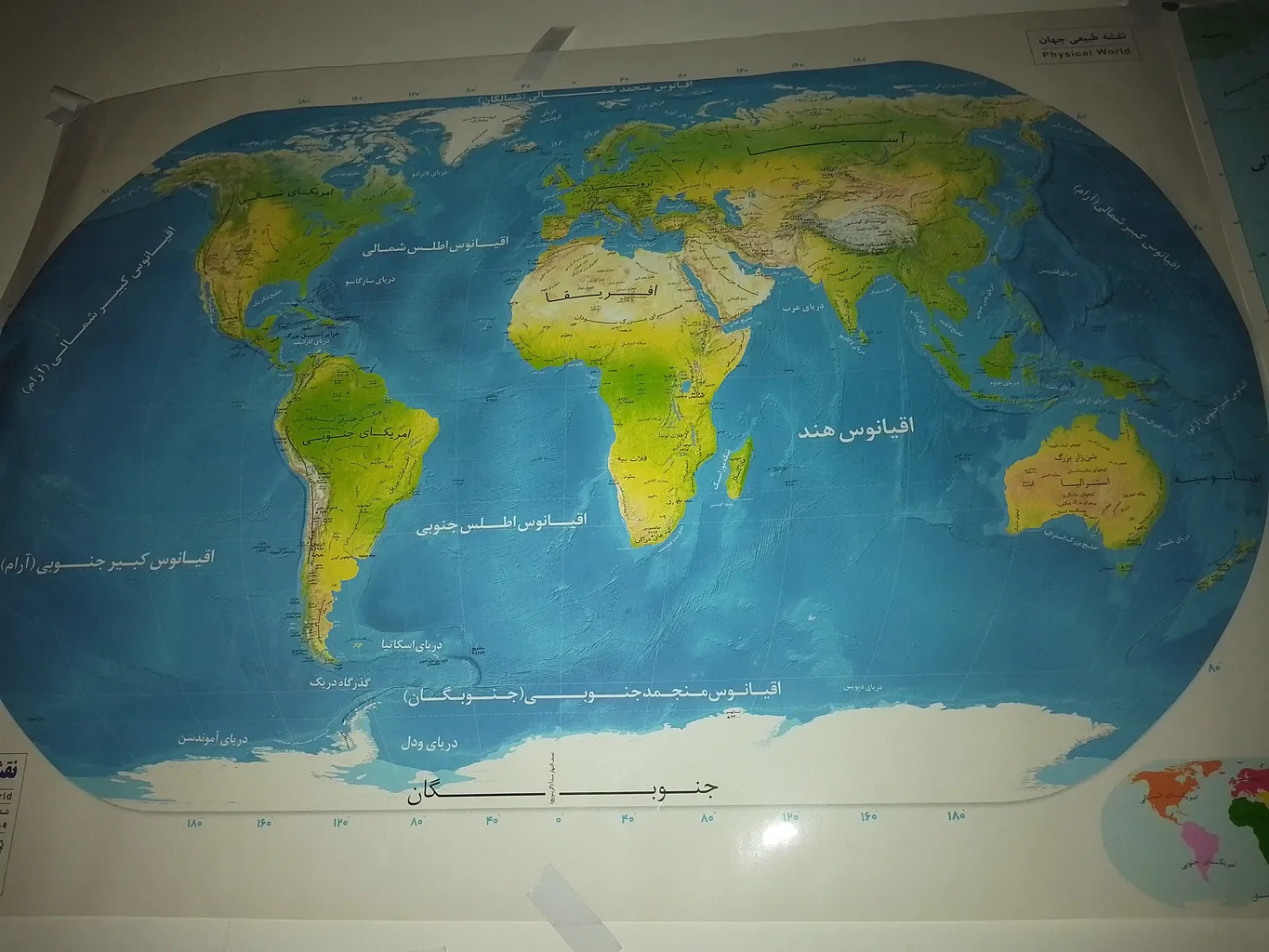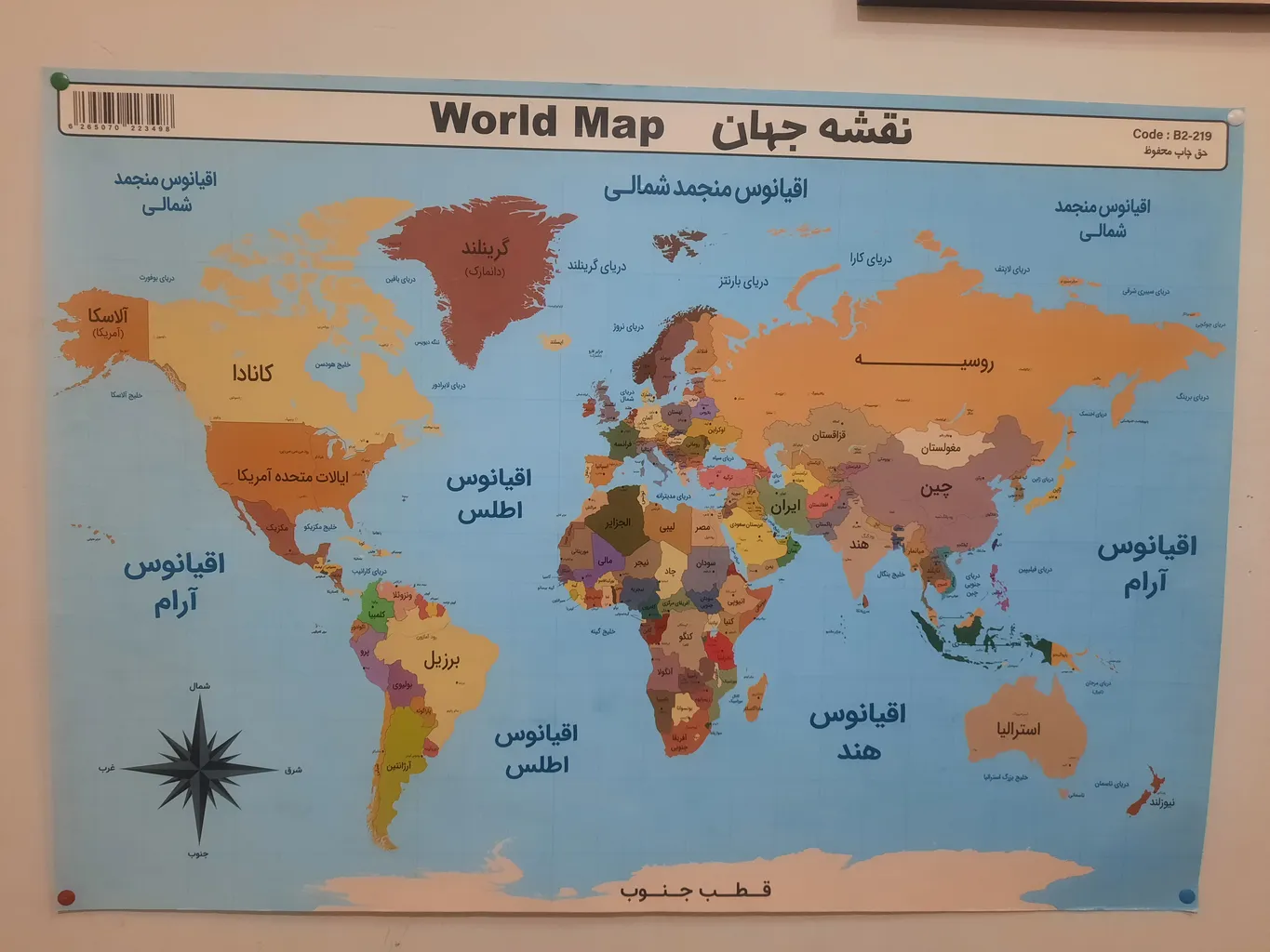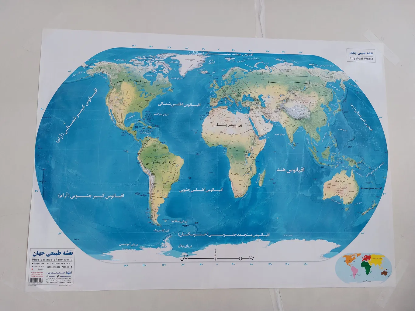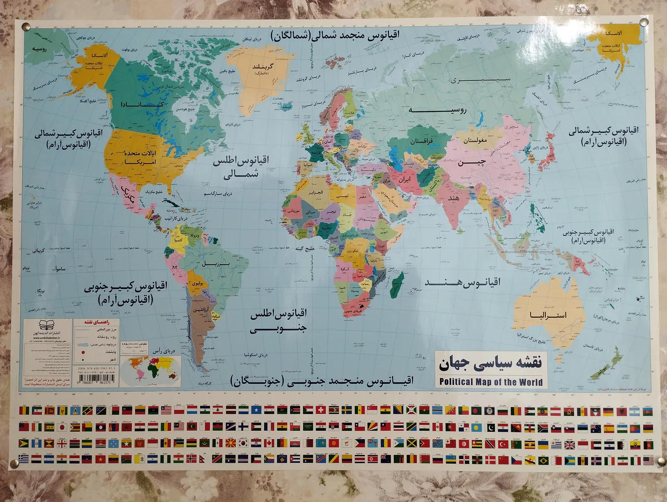 خریدار بدون نام : کاربردی و لازم ؛ امروز به دستم رسید.از زمان تحویل و بسته بندی کاملا راضیم. هیچ چروک، لکه و ناصافی ای روی نقشه وجود نداره.حدود کشور ها و اسم و پرچم هاشون کاملا واضحه و حرفی باقی نمی زاره