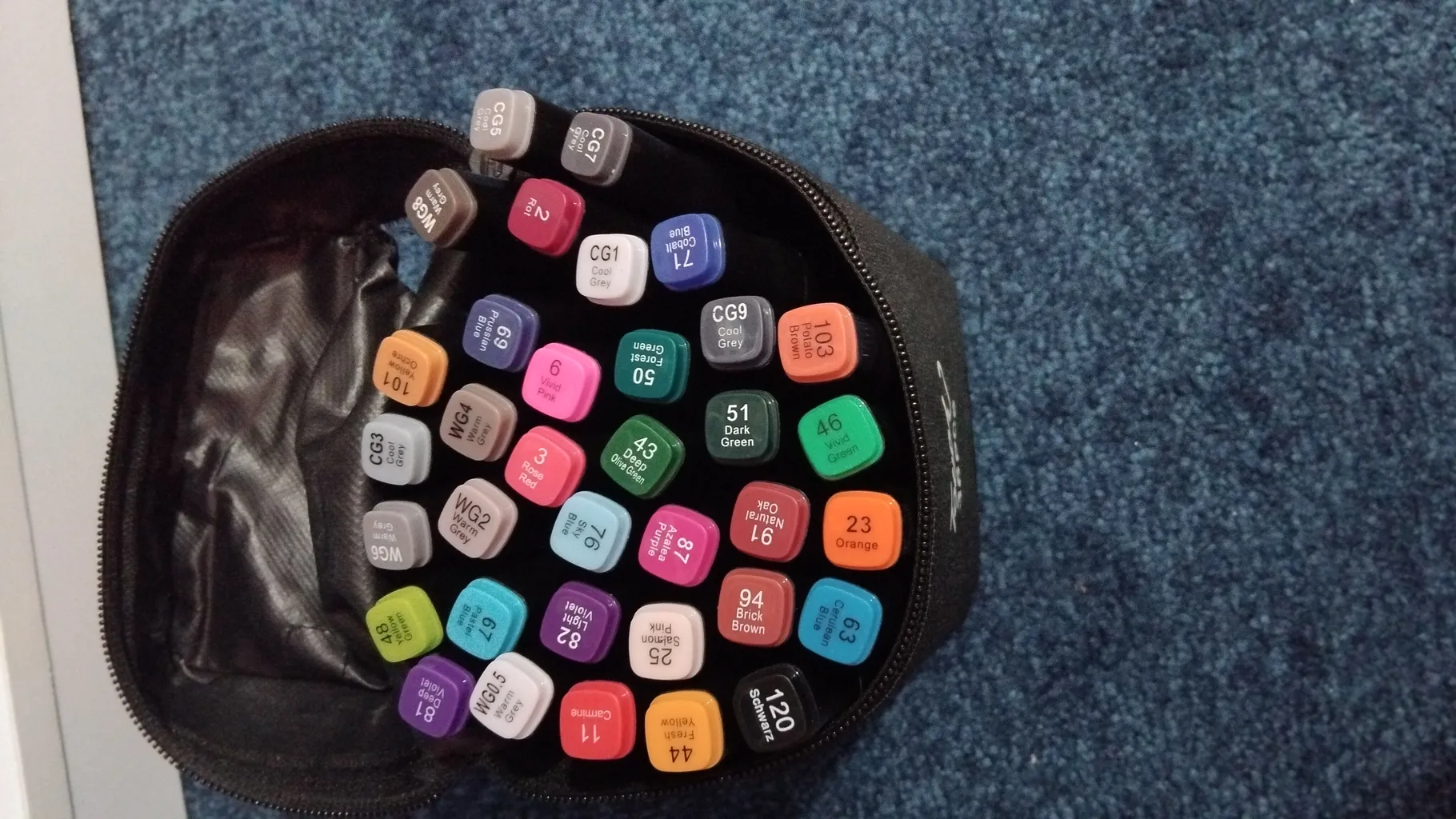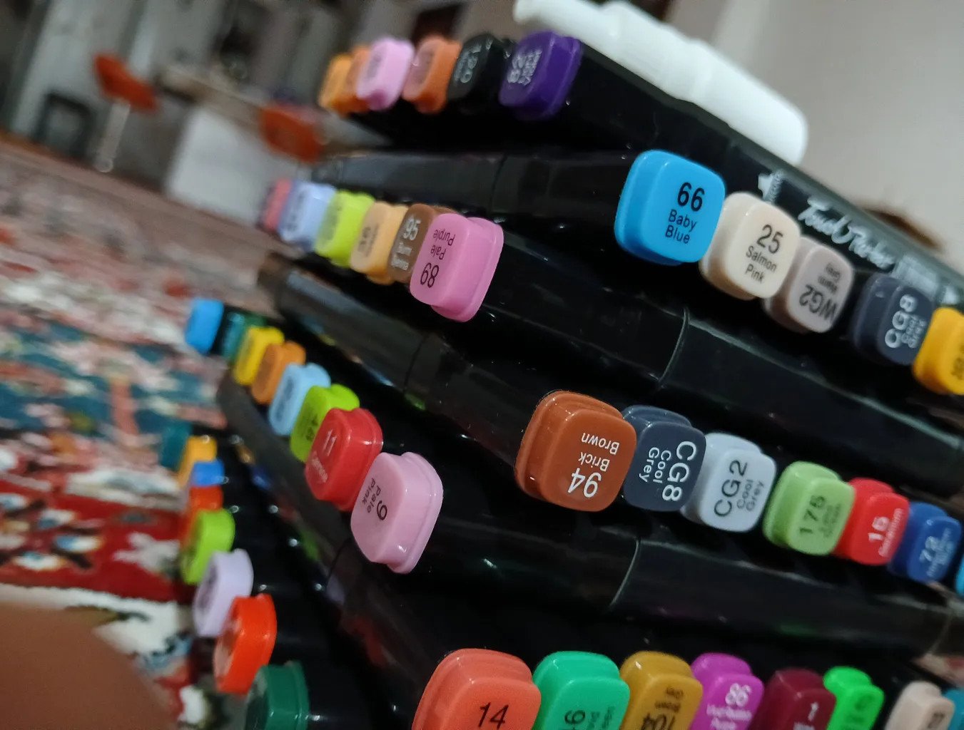(اسم رنگ هر ماژیگ به چینی روی جلدش نوشته شده که با گوگل ترنسلیت اسماشو به فارسی دراوردم توی عکس معلومه)