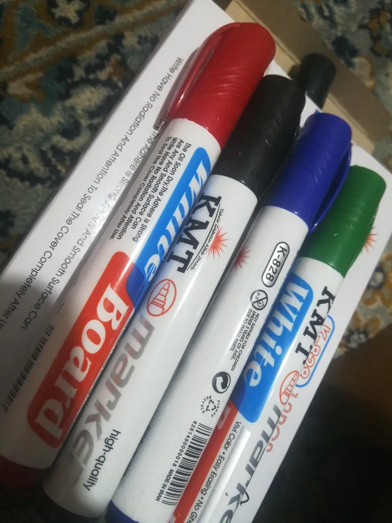 حلیمه ماخور : ۴ عدد ماژیک ؛ ماژیک ها نوک نمدی گرد دارند.