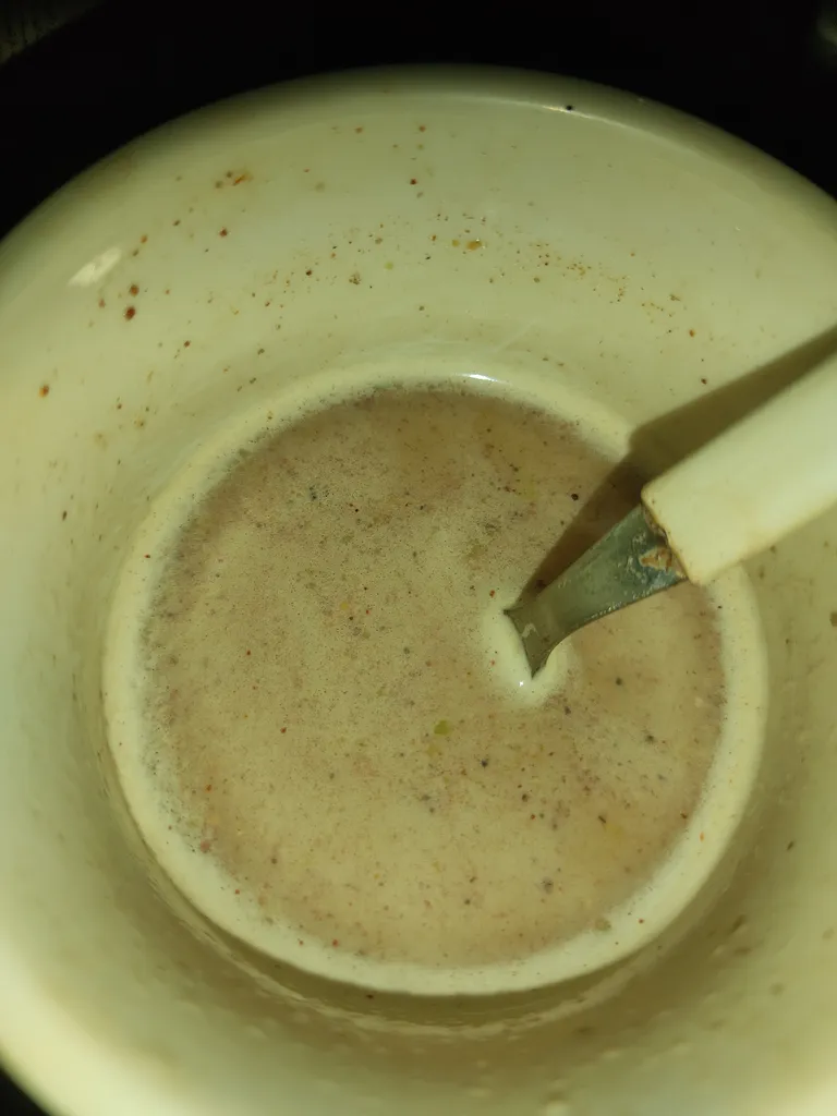 وقتی که بهمش بزنین و ته نشین بشه ، چیزی ته لیوان نمیمونه چون چیزی از ادویجات ویا مواد توش نیست.