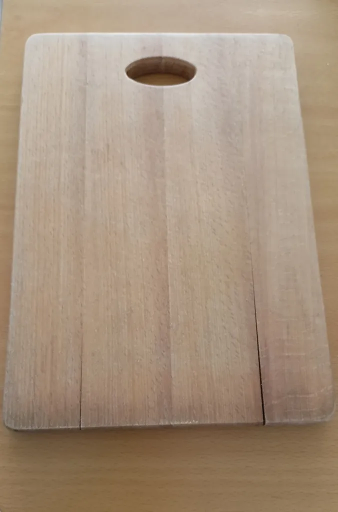 تخته برش ؛ خب ظاهرا جنسایی که مشکل دارنو تو تخفیف میدن پشت برچسبش که قبل بازکرون دیده نمیشد یه تیکه بزرگ بتونه داره که نمیدونم در مواجهه با آب چقدر دووم میاره در کل با توجه به اندازه کوچیک و وزن زیاد و یک تیکه نبودن چوبش خرید جالبی نبود برام