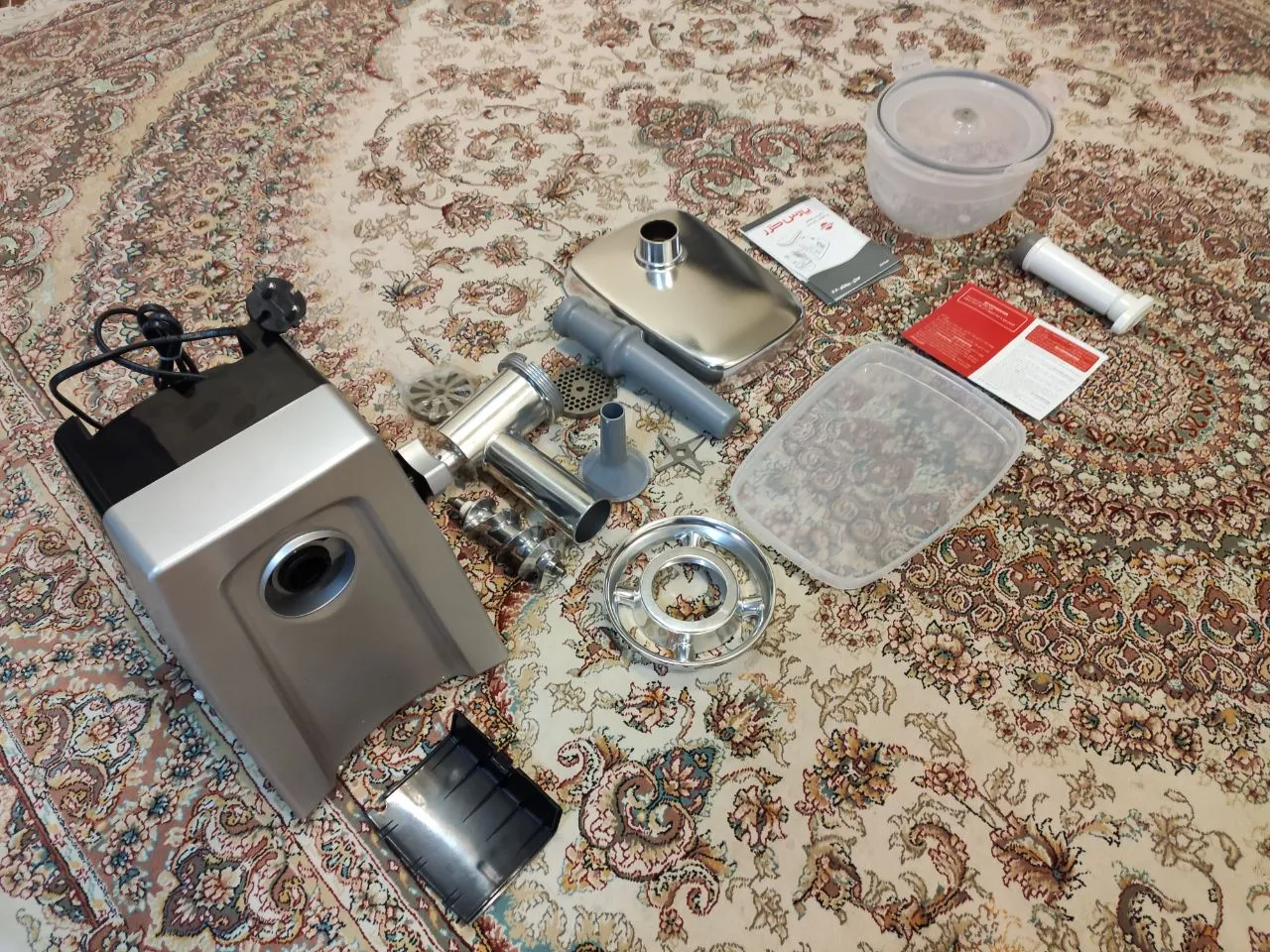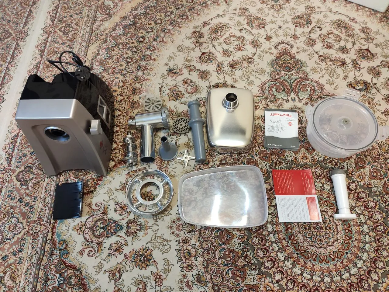 - ⬤ قابلیت چرخ کردن انواع گوشت : توانایی چرخ کردن انواع گوشت، از جمله ویژگیهایی است که خریداران به آن توجه کرده و از عملکرد دستگاه در این زمینه ابراز رضایت کردهاند. این قابلیت به کاربر اجازه میدهد تا از دستگاه برای مصارف مختلف استفاده کند و از تنوع در تهیه غذا بهرهمند شود.