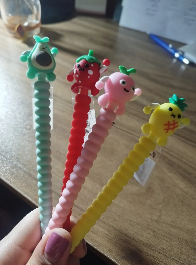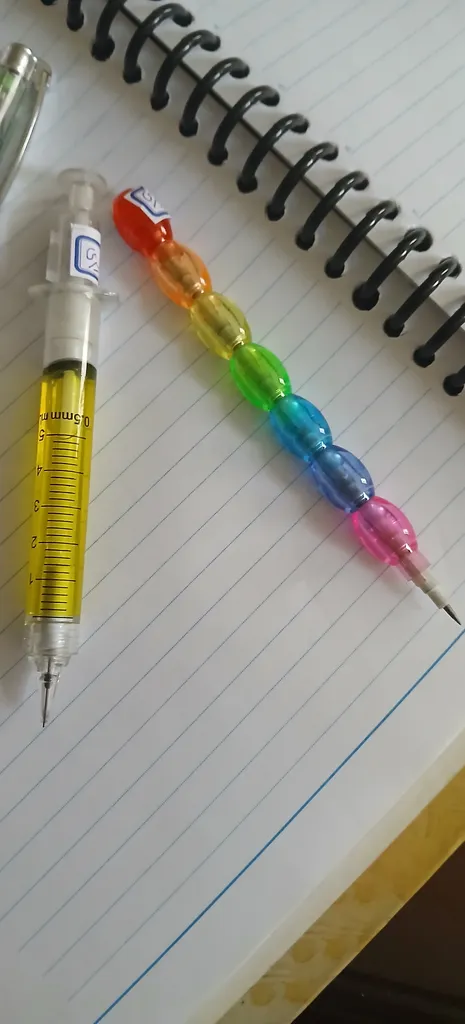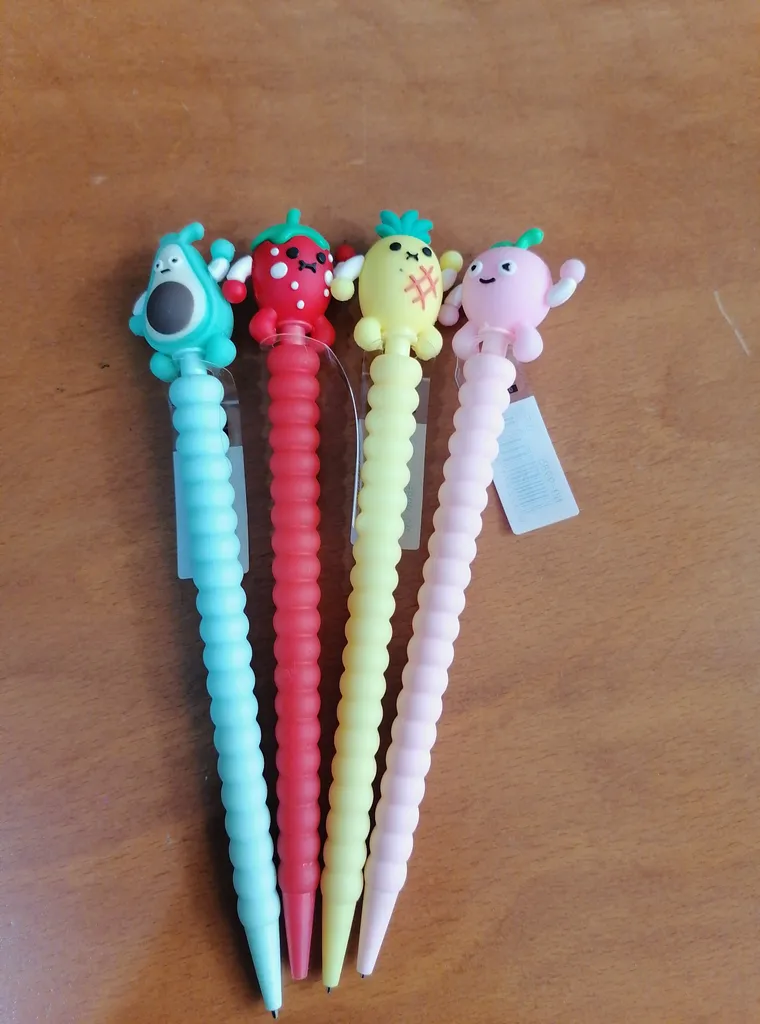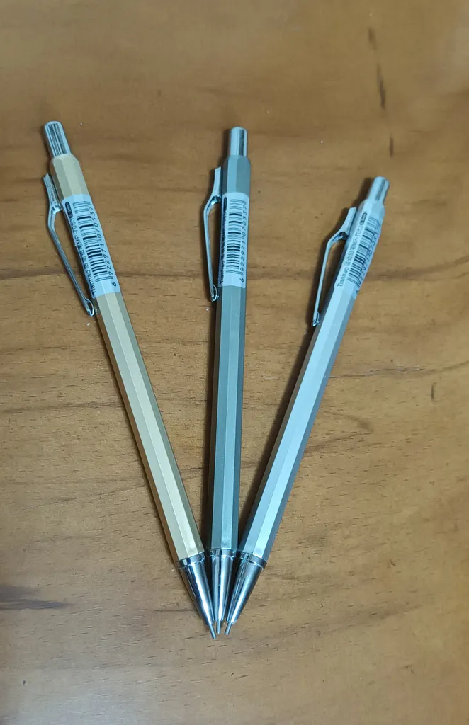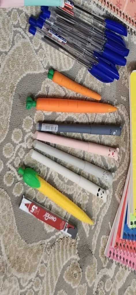 در مورد رنگش یک سری مثل نارنجی و بنفش بدنه مخملی طوری دارن که واقعا قشنگ هستند ولی رنگ زرد و فیروزه ای گرفتم که خوشم نیومد. بدنه شفافی دارن که به نظرم شکننده اومد و ترجیح من همون مدادهای ماتی هست که در عکس میبینید مدل شفاف رو پیشنهاد نمیکنم