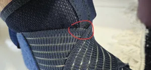 دوستان توجه کنند کشهایی که برای محکم شدن این قوزک بند بود کمی قسمت پارچه ای آن زدگی داشت و باعث میشد پا را زخم کند. با گذاشتن یک دستمال یا پارچه این مشکل برطرف میشه. اما توقع دیگه ای میرفت. توی عکس دقیقا اون قسمتی که خط کشیده شده پارچه کار نشده یا زده شده این قسمت باعث میشه اگر پارچه ای بین کش و پوست پا گذاشته نشود، این قوزک بند قابل استفاده نباشد