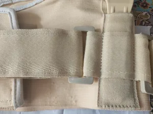 از نظر کیفیت جنس خوبی داشت اما من نتونستم استفاده کنم و مرجوع کردم چون پوشیدنش برام سخت بود باید از پشت پا چسبش رو ببندید و بعد سگک رو ببندید یعنی درحالت ایستاده بسته بشود من برای ایستادن مشکل دارم دورزانو بین L و xl بود ایکس لارج گرفتم ولی بزرگ بود