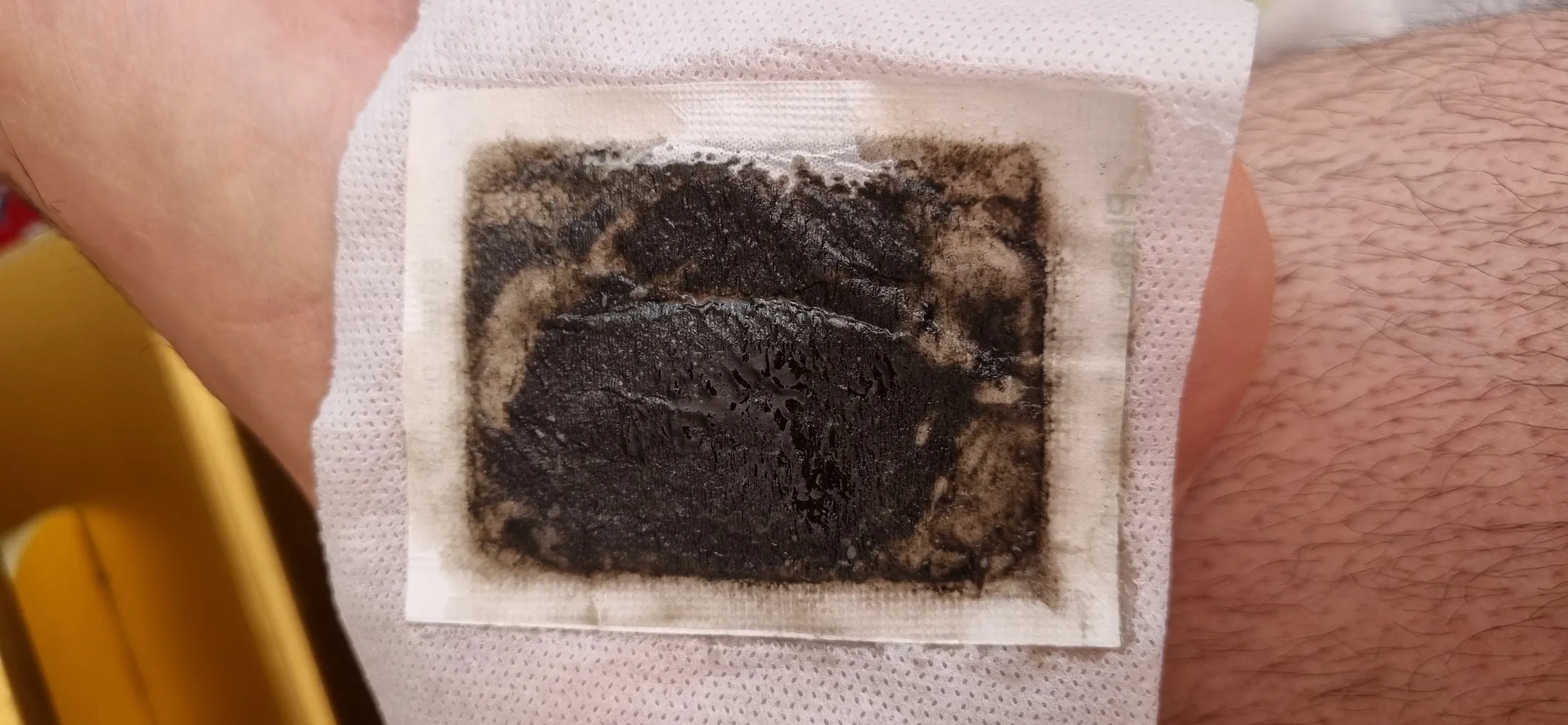 پد مربوط به دارخانه دوپامین به خوبی عمل کرد و کاملن سیاه شد و چسبش هم راحت جدا شد از پوست ولی شرکت تورا کو سفید باقی ماند چسبش نیاز به شستن داره و کندنش سختره عکس اگر بتونم میزارم که دوتاش برای تست یک شب امتحان کردم اونی که سیاه دوپامین است و سفیده توراکو