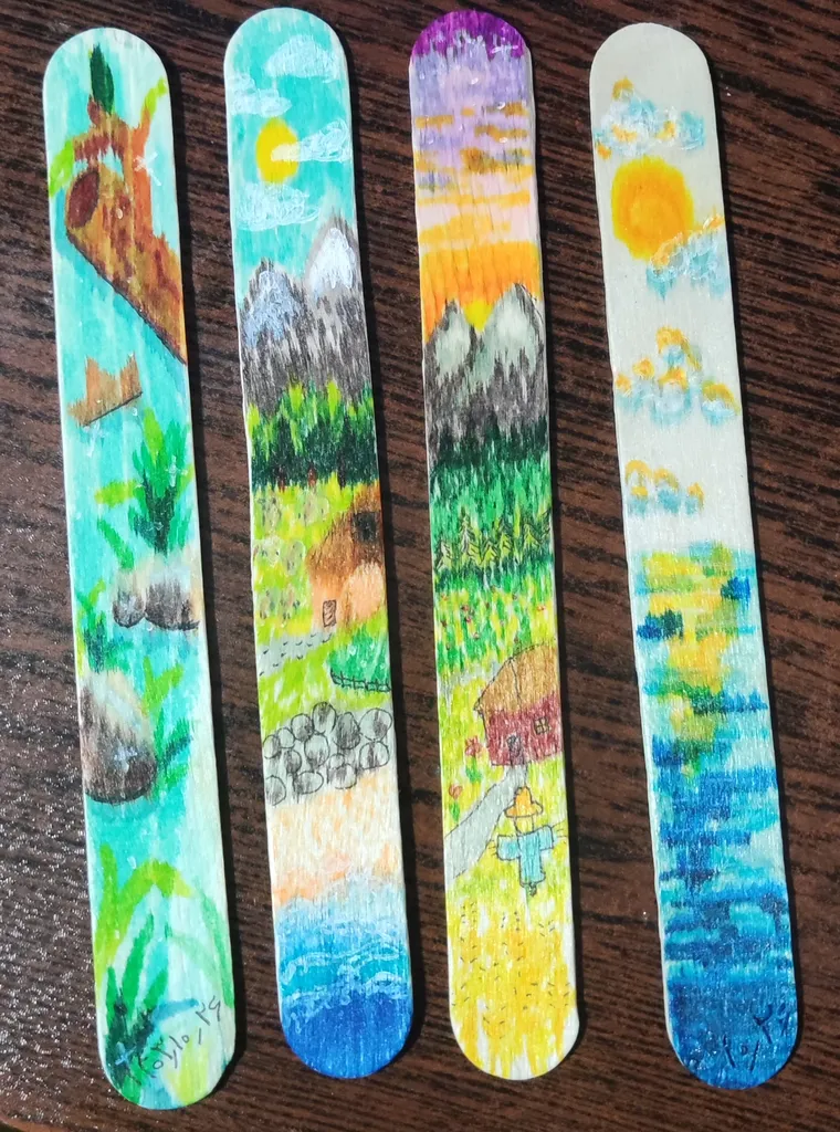 خب اول اینکه 19 سانت نیست پونزده سانته من یک بوک مارک نونزده سانتی داشتم و میخواستم اندازه اون باشه که بوک مارک درست کنم چون کم داشتم ولی کوچیکتر بود چوب هاشم یک دست نبود اما در کل راضی بودم تونستم روشون با ماژیک نقاشی بکشم و استفاده کنم فقط کاش بزرگتر بود که مثل بوک مارک خودم براش عروسک هم درست میکردم حیف