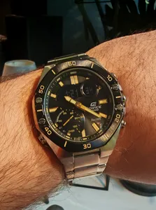 • این ساعت با قابلیت هایی که داره واقعا می ارزه از جمله ساعت عقربه ای ( شب نما هم هستش)، ساعت دوم دیجیتال ، کرنومتر ، آلارم که تا دوازده زنگ دو ضرب هم میتونی تنظیم کنی ، هفته شمار و تاریخ و نور پس زمینه که برای شب واقعا خوبه . که نیاز تو از یه ساعت کامل بر طرف می کنه جنس بندش استیله که سبکه من خودم از بندش خوشم نیومد ولی جنسش خوبه چون سبک دوست ندارم ساعت ضد آب هستش تا عمق سه متر خلاصه بخوام بگم ارزش داره تا اون ساعت های دو سه میلیونی که فیک برند سیکو و ساعت های غیره ای معتبره در دنیا حتما پیشنهاد میکنم بخرین حتی در رنج قیمتی بدون تخفیف هم بازم ارزش داره سنگینه اینم بگم اونایی که ساعت های سنگین دوست دارن بخرن ۱۷۰گرمه عکسشم میزارم در دراز مدت هم نظرمو می نویسم