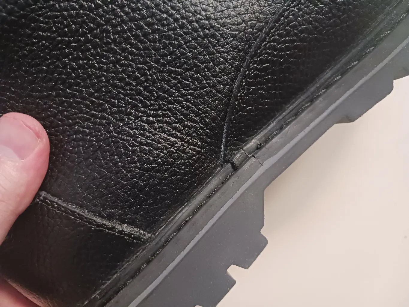 • خریدار بدون نام : من خانم هستم و برای خودم گرفتم. فکر میکردم شماره ۴۰مردانه برای زنها بزرگتر خواهد بود ولی دقیقا اندازه م بود. زیباست و طرحش منحصرا مردانه نیست و برای خانمها هم اوکیه. کیفیتش هم معمولی بود. یکم جنس کفی و رویه ش خشکه و من همینشو دوس دارم آدم رو مرتب تر نشون میده. فقط اینکه احتمال میدم جاهایی که تامیخوره زود بشکنه و تغییر قیافه بده (عکس تاخودگی بعد از یکروز استفاده ی مداوم رو میذارم ببینید) در هرصورت نسبت به هزینه ایی که میکنید امتیازش ۵ستاره هست. برای استفاده روزانه و مخصوصا پشت فرمون خوبه و اذیت نمیکنه. برای بارونهای معمولی هم ضدآبه ولی برای برف و آبگرفتگی معابر اگر حجم آب زیاد باشه خوب نیست چون کناره هاش (برای راحت تر رفتن پا) از کش استفاده شده و کاملا ضدآب محسوب نمیشه. ضمنا زیره ش برای برف و یخ خوب نیست