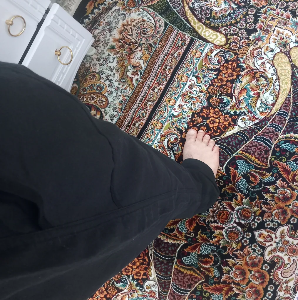 من قد بلندم و 186 سانت قدمه ، ببینید این شلوار چقدر برای من بزرگه ، اندازه همه سایزها 106 سانته