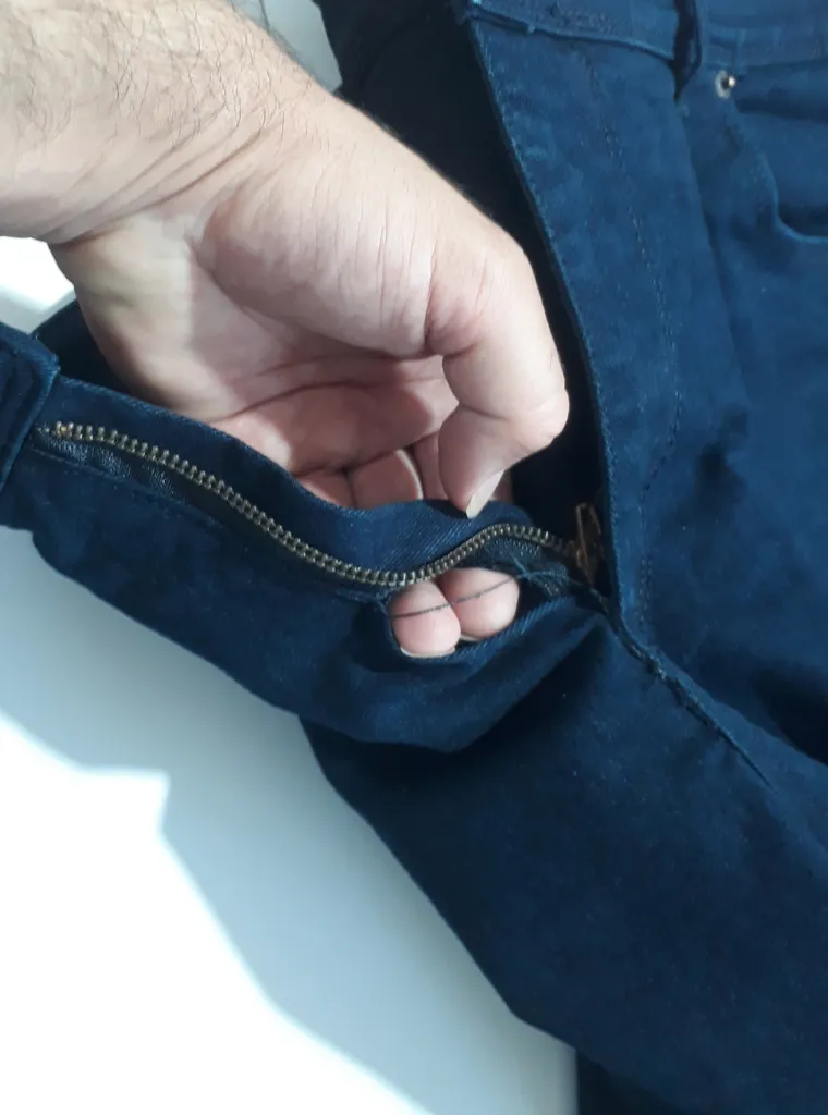 دوخت زیپ پاره است - رنگ پارچه از داخل تیره است یعنی مقدار پلی استر بکار رفته در پارچه زیاد می باشد (پارچه مرغوب نیست) - در تابستان به علت گرما و تعرق کمی رنگ به لباس زیر پس می دهد. ران و دم پا و فاق راحت است (جذب نیست) - برش و دوخت (به غیر از زیپ) تمیز است - نخ دوخت همرنگ پارچه است - مناسب روزمره می باشد
