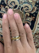 مثل عکس نیست کلا 50% شبیه عکس رو صاف نیست مثل عکس ، حالا برآمدگی داره که تو ذوق زنه و برای خانوما بیشتر مناسبه و اینکه لبه انگشتر اصلا مثل عکس طراحی نداره به عکس هایی که می زارم دقت کنید دقیق مثل مقایسه آیفون با گوشی های کپی آیفون هست و من سنم 17 هست ساز 9 مناسبه