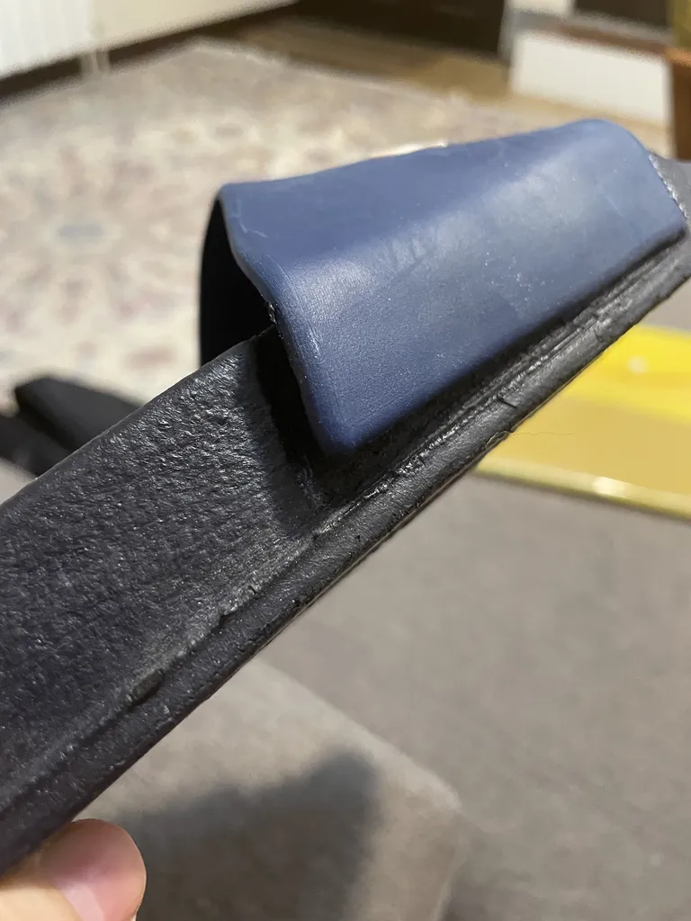 بعداز ۳۶ روز استفاده قسمت رویه دمپایی از زیره جدا شد چون با چسب چسبیده شده و نمای دوخت که توی عکس روی کالا می بینید فقط تزیینی هست ، با توجه به قیمت بالاتر نسبت به بقیه دمپایی های مشابه در دیجی کالا من انتظار کیفیت بهتری رو داشتم ، دمپایی راحتی هست جنس نرمی داره ولی اگر دنبال دمپایی دور دوخت هستید که زیاد کار کنه مناسب نیست، عکسشو میزارم