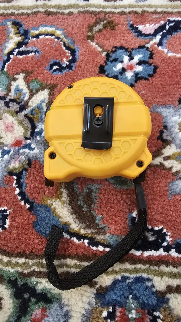 - ⬤ بند آویز : بندهای آویز به کاربران این امکان را میدهند که متر را به کمربند یا کولهپشتی خود متصل کنند. خریداران از این ویژگی به عنوان یک مزیت بزرگ یاد میکنند، زیرا به راحتی میتوانند متر را در دسترس داشته باشند. این بندها به ویژه در پروژههای ساختمانی و کارهای میدانی بسیار کاربردی هستند. اما برخی از کاربران به کیفیت پایین بندها و احتمال پاره شدن آنها در شرایط سخت اشاره کردهاند.
