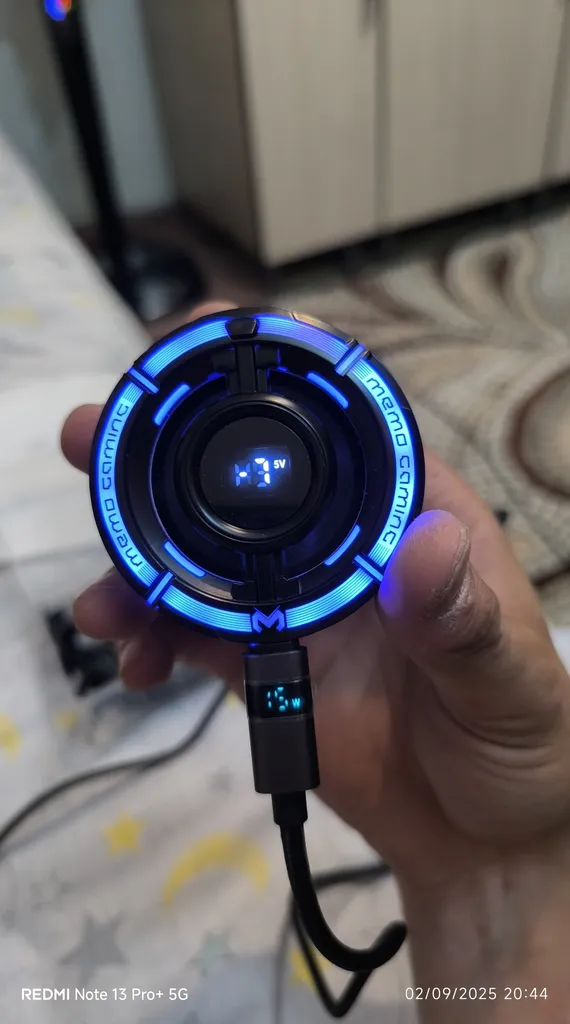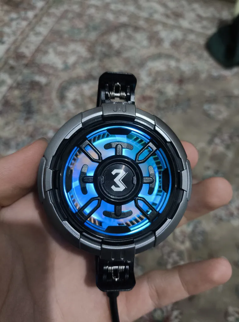 فعلا بهترین فن ممو ارزان قیمت و بازار هست، هم کم مصرفه هم توان خنک کنندگی بالایی داره، آر جی بی خیلی خفن که ۳ حالت داره و تغییر داده میشه حتی خاموش هم میشه، زیر ۳۰ ثانیه دما منفی میشه، حالت ai واقعا کار میکنه از ۲ وات تا ۱۰ وات میده که مصرف فن و میاره پایین برای وقتی که بیرون از خونه به پاور بانک وصلید چون خیلی سریع میتونه شارژ پاوربانک و تموم کنه، حالت Ai دما رو روی ۱۰ درجه بالای صفر تنظیم میکنه. من خودم اول میزارم یه رب کار کنه روی حالت L1 بعد میزارم روی Ai. کلا در حین استفاده از این فن و اجرای بازی گوشی انگار بی استفاده گوشه ی اتاقه و با برنامه antuto دمای باتری ۲۹ و سی پی یو ۳۲ که فوق العادست. روی حالت L1 خروجی تا ۱۶ وات میرسه، در تابستون هم به این دما ها و نتایج رسیدم. به دلیل اندازه بزرگ هیت سینک عمل خنک کنندگی عالیه و زیاد گرما از خودش بیرون نمیده درواقع زاویه ی پرتاب خروجی بادش اینجوریه که به دست شما نمیخوره. تو دمای اتاق به راحتی به -۸ درجه تو تابستون میرسه که بعد از ده تا ۱۵ دقیقه روشن گذاشتن فن و نچسبوندنش به گوشی، صفحه ی پشتی کاملا یخ و برفک میزنه. روی خود برچسب فن نوشته در دمای محیطی ۲۵ درجه به پایین پشت فن یخ میزنه، با برچسب مگنت بدون مزاحمت گیره میتونید خیلی راحت بازی کنید بدون اذیت شدن دست، من چسبوندم به قاب نازک که نیازی نیست گوشی رو از قاب دربیارید مخصوصا بیرون از خونه که ریسک افتادن گوشی هست . اصلا لرزش نداره و صدای فن کم. آداپتور پیشنهادی 5v 3a ۱۵ وات یا افرادی که شیائومی دارن شارژر ۳۳ وات بهش ۱۵ وات میده بیشتر نزنید، میزنید با کابل خودش بزنید جریان بیش از حد وارد نشه