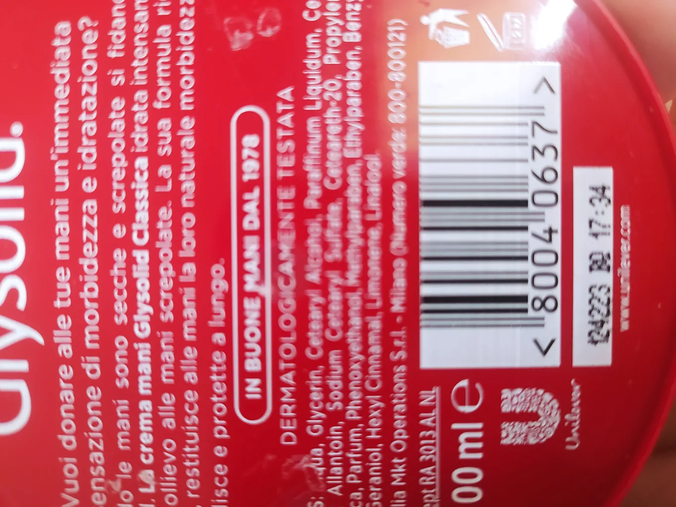 یه نکته بامزه هم داره پشت کرم به ایتالیایی نوشته و میلان زده بعد یه برچسب فارسی روش چسبوندن نوشتن تولید آلمان 🤷 البته توو عکس من برچسب و کندم