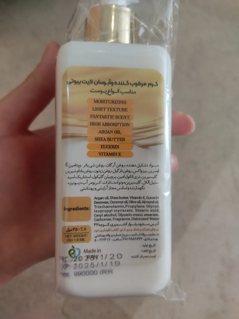 کرم لایت بیوتی ؛ تازه به دستم رسید،دوستان موقعه خرید توجه کنین این کرم بخاطر مرطوب کنندگی بالا و چرب و سنگین بودن اصلا به درد پوست صورت نمیخوره و به مرور زمان باعث بزرگ شدن منافذ صورت، جوش شدید قرمز یا زیر پوستی، چرب و روغنی شدن پوست و... میشه پس این کرم فقط برای دست یا بدن استفاده باید بشه. اندازش خوبه بزرگه و علاوه بر اینکه قدرت مرطوب کنندگیش بالاعه خوشبو هم هست. فقط یه مشکل بزرگ داره که درش بسته نمیشه و فقط میتونم درشو روش قرار بدم تا کرم حداقل خشک نشه