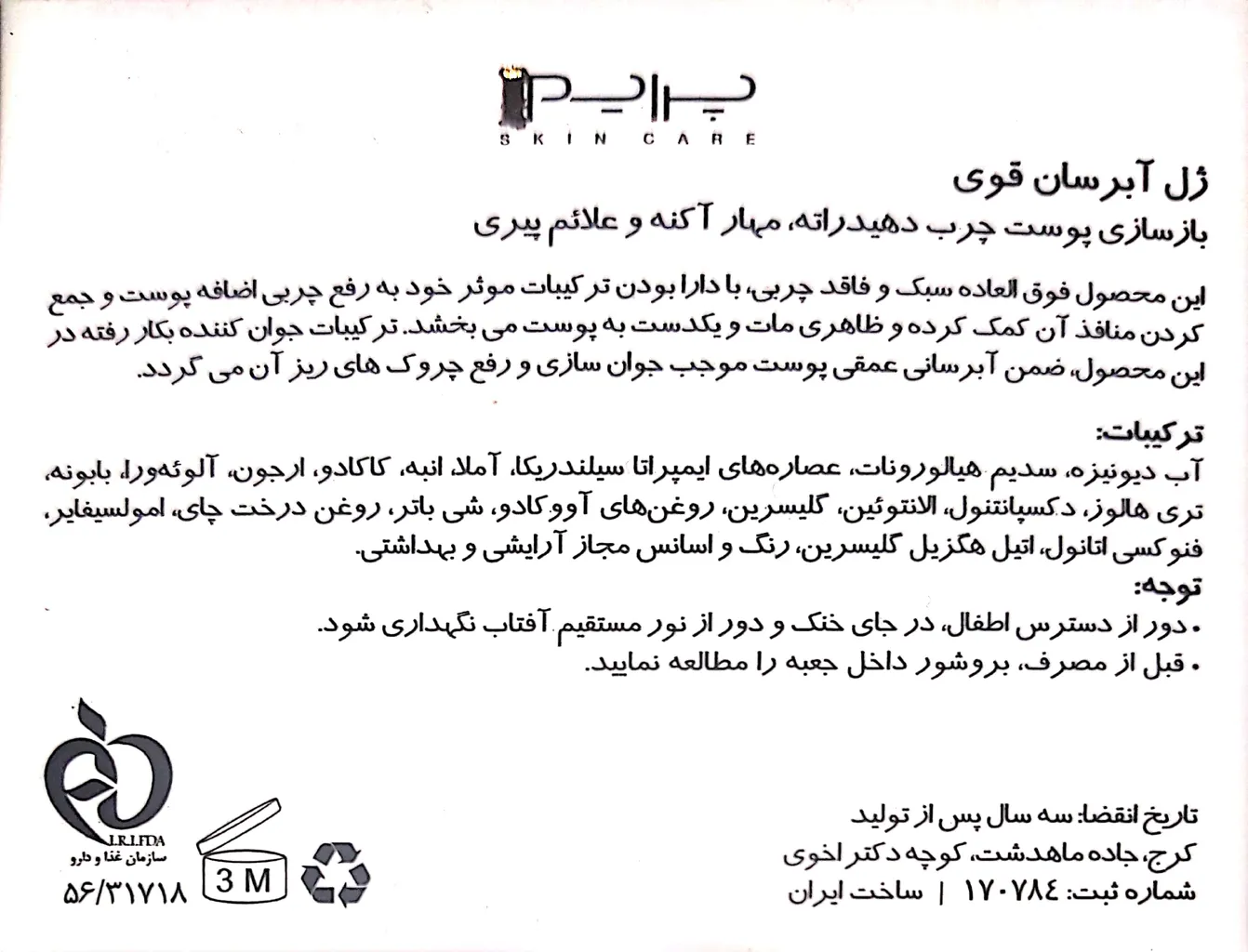 واقعا محصولات پرایم درجه یکن حیف که قیمتشون خیلی رفته بالا ،این ژل آبرسانش خیلی پوست و خوب و مخملی میکنه ،فقط اگه پوست حساسی دارید ممکنه یکم سوزش داشته باشه پوستتون ،ولی نگم ار آبرسانی و لطافتی که به پوست میده