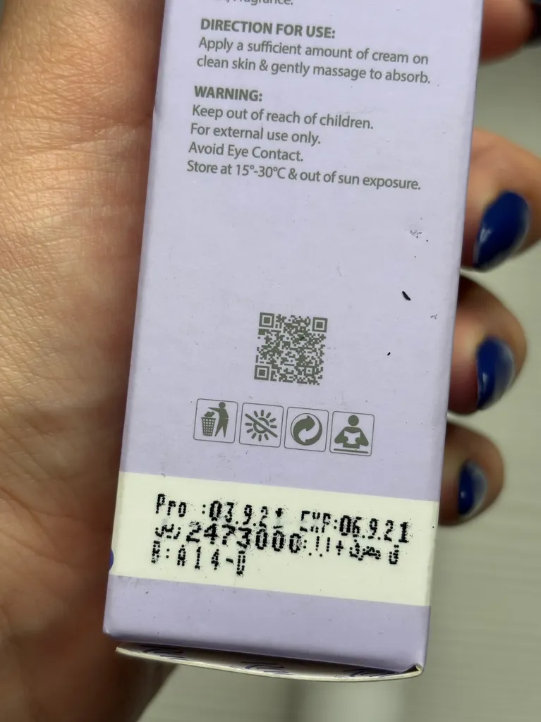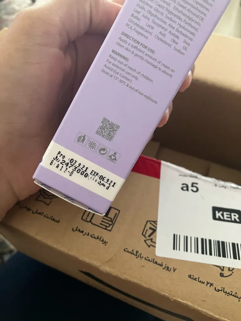 خود محصول خوب بود نسبتا البته فعلا فقط یک بار استفاده کردم اما جعبه ش موقعی که رسید باز و پاره شده بود اما خود کرم پلمب بود. عکس تاریخ تولید و مصرفشم گذاشتم