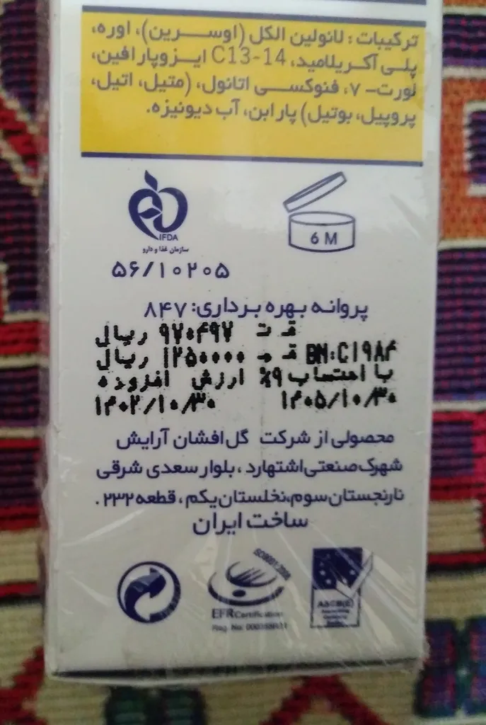 تاریخ محصول هم در تصویر مشخص هست. برای مادرم سفارش دادم و امیدوارم پس از استفاده راضی باشند