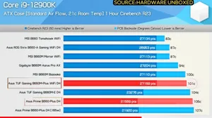 با اختلاف یکی از بهترین ماردبور های سری b برای نسل ۱۲-۱۳-۱۴ اینتل هستش که میشه حتی روش پردازنده های i7 و i9 رو هم بدون افت عملکرد و بالا رفتن دمای vrm نصب کرد. چون علاوه بر مدار تغذیه قوی هیت سینک بسیار بزرگ تری نسبت به سری tuf همین سری داره. عکس منبعش رو براتون میگذارم.
