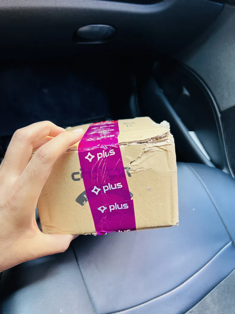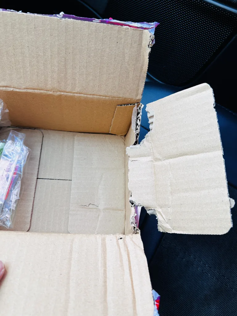 و از کارتن نامناسب و کوچیک استفاده شده بود ک به علت سنگینی و حمل نامناسب دچار پارگی شده و در دفتر مقصد دوباره چسب بهش زده بودند