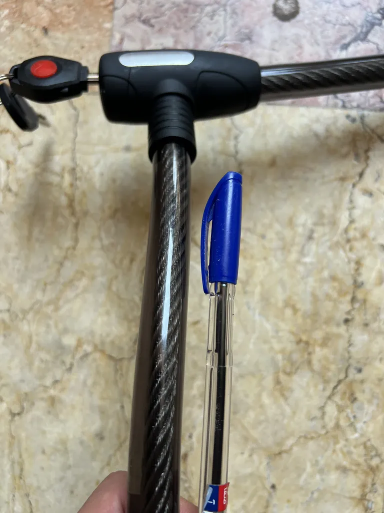 سلام.یه قفل گردن کلفت با طول ۱.۸۰ سانت مناسب موتورهای اسکوتر با روکش پلاستیک بر روی کابل و قفل.برای کسانی که میخوان موقع بستن موتور آسیبی به بدنه وارد نشه.ایمنی خوب و کیفیت کار بالاس.استفاده از این قفل راحت وبی دغدغه هست.همچنین طول بلند کابل برای موتورهای چرخهای ۱۴ یا ۱۲ اینچ که چرخهای کوچیکی هستند و فاصله اونها تا زین موتور زیاد هست کاملا مناسبه.من برای هوندا کلیک خریدم و واقعا از متریال و کیفیت کار خوشم اومد.دو عدد کلید داره که یکیشون یه چراغ کو چیک داره.بنظرم با این ابهت قفل،دزد از خیر دزدیدن موتور میگذره
