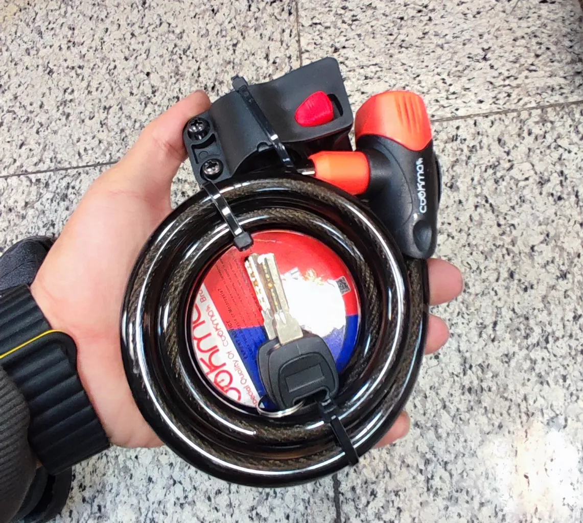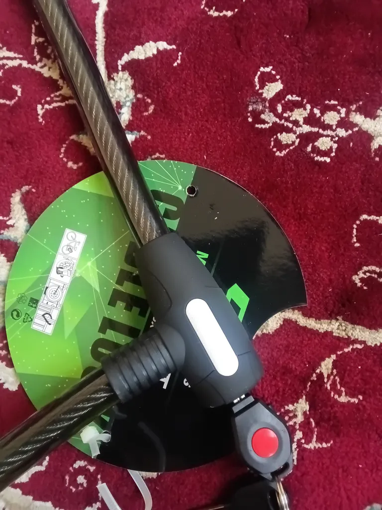 محمد آذرافشان : قفل کابلی موتور سیکلت اوکی ۹۰۴۱ 181800 ؛ عالی از هر نظر، بلند، ضخیم، قوی و محکم با کلید کامپیوتری دو طرفه، انعطاف پذیری بالا و هرزگرد بودنه دو سره قفل که باعث میشه گره نخوره، همراه ۲کلید که اصلیش یه چراغ LED آبی مثل چراغ قوه برای کار تو تاریکی داره