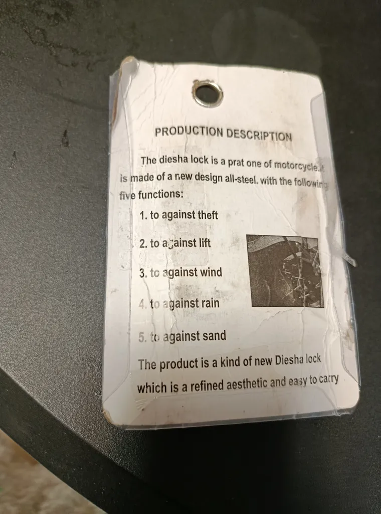 سلام. من امروز دهم فروردین ۱۴۰۴ این قفل موتور بدستم رسید.