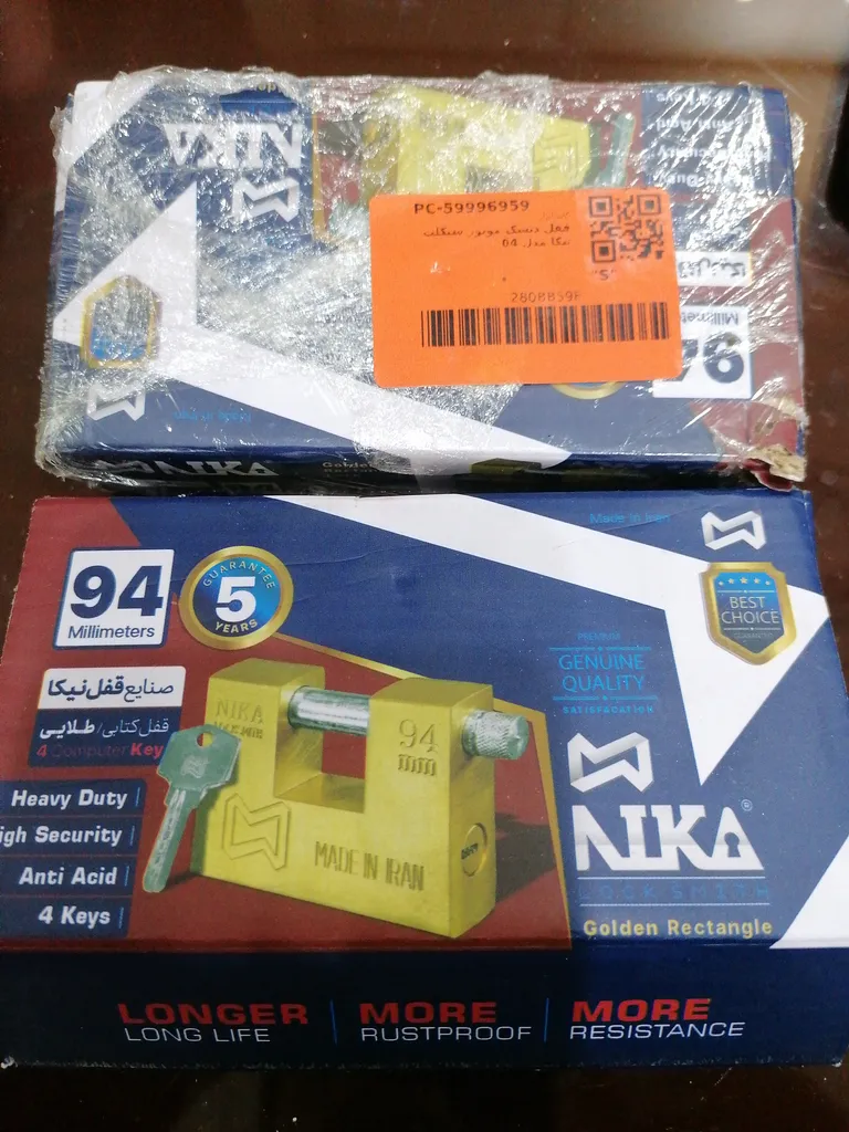 ۵. بسته بندی جالبی نداشت و نوشته ها کاملن انگلیسی هست در صورتی که قفل ایرانیه و روی بسته یا محصول ایرانی بودنش ذکر نشده و علامت استاندارد هم نداره. و توضیحات خوب و دقیقی هم در مورد نوع آلیاژ و یا ضخامت کابل فلزی ذکر نشده.
