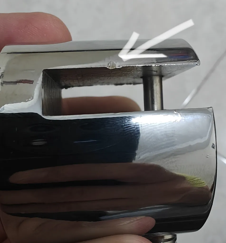 بخش برش خورده قفل صاف و صیقلی نبود . یک تیکه از قفل رنگش زرد بود. یک تیکه از قفل هم قلوه کن شده بود .