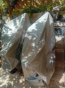 بهادر براتی سده : چادر خوبیه ؛ چادر خوبیه با این قیمت بسیار میارزه کل موتور (کلیک) را پوشش میده اضاف هم داره فقط ضد اب نیست با کمی بارون کل زین خیس شد زیرش کش داره رنگش هم که توی عکس مشخصه طرف نقره ای تابستانه هست و مشکی زمستانه ولی زیاد توی افتاب زیرش نباشه بهتره کمی نازکه ولی جنس قوی داره کیف پارچه ای هم داشت