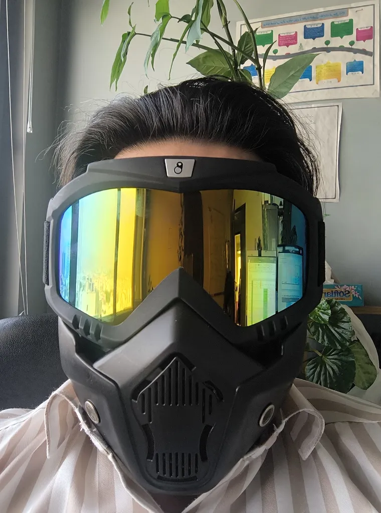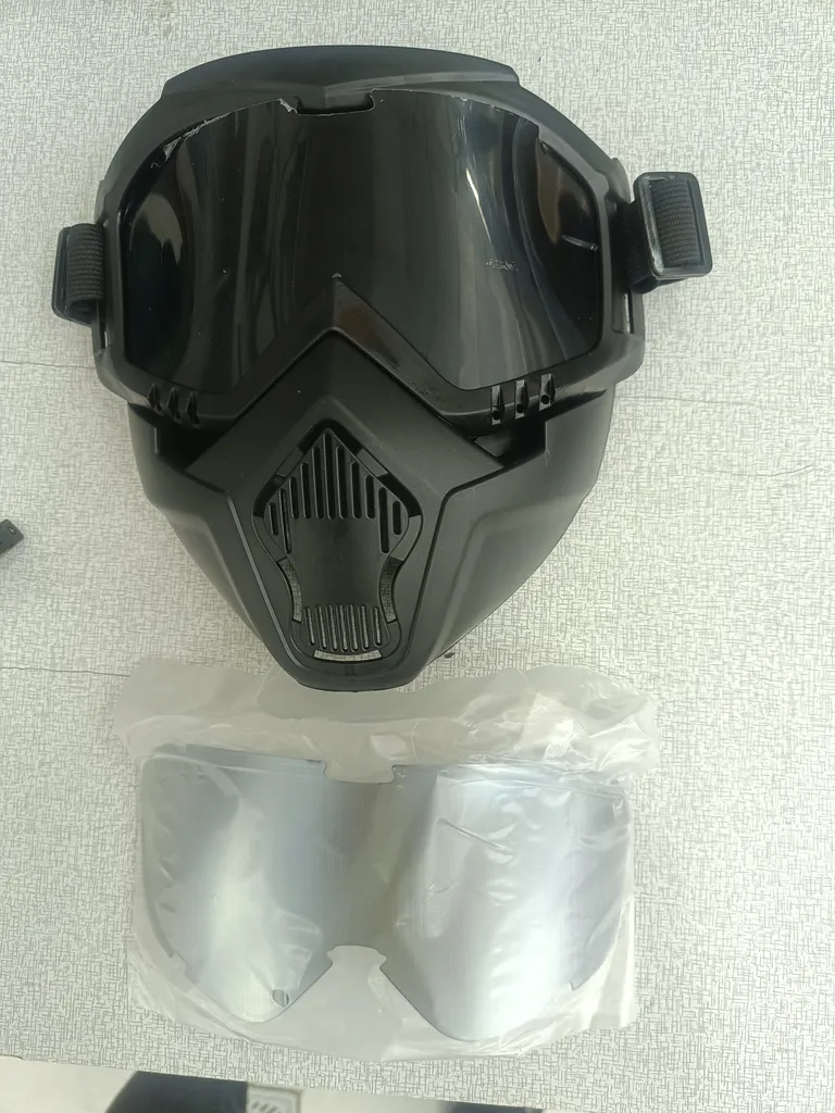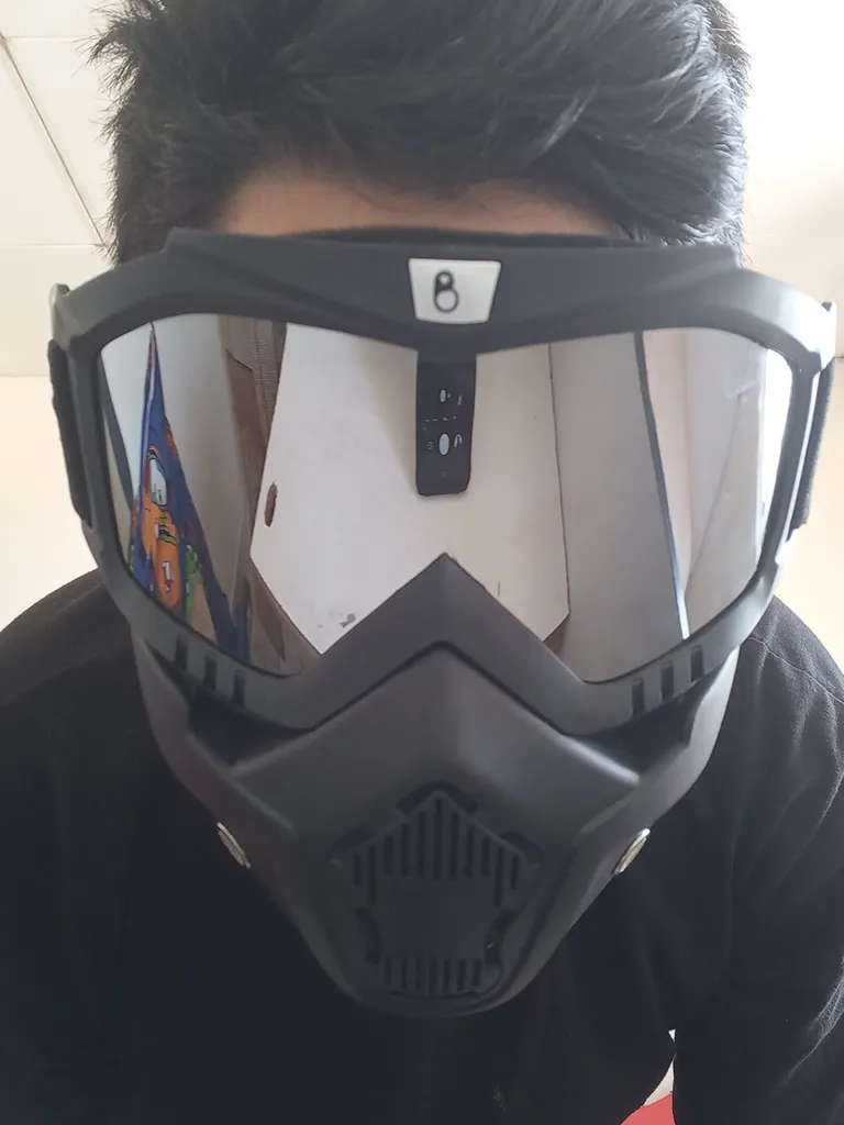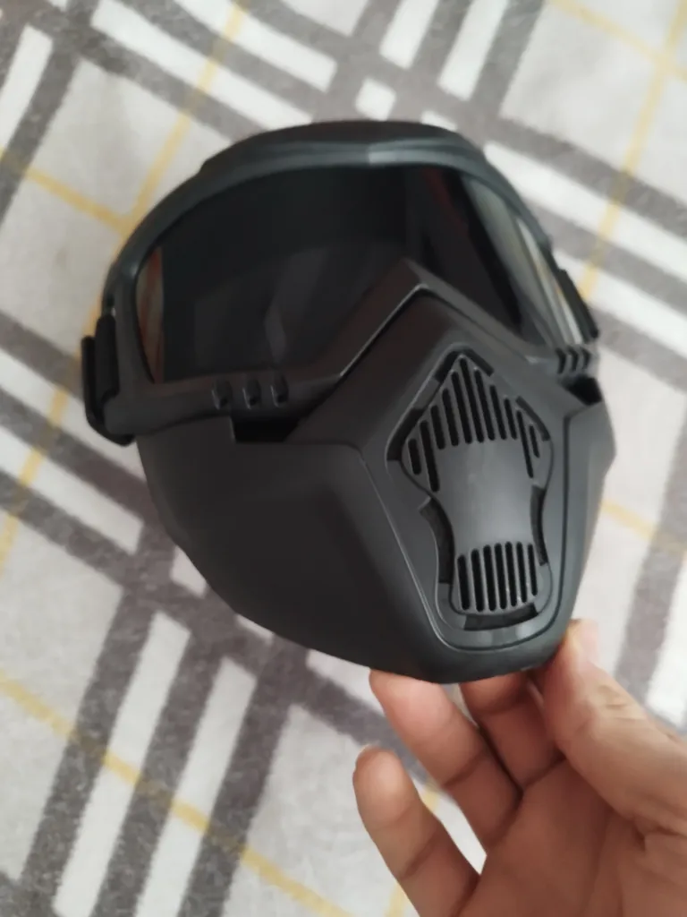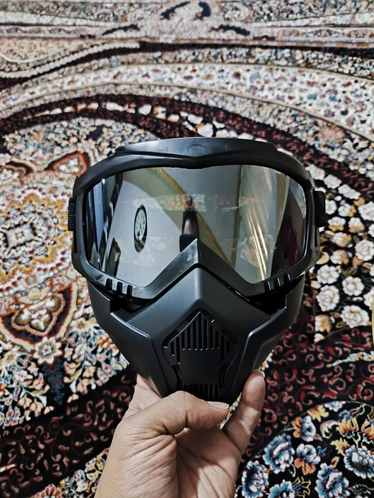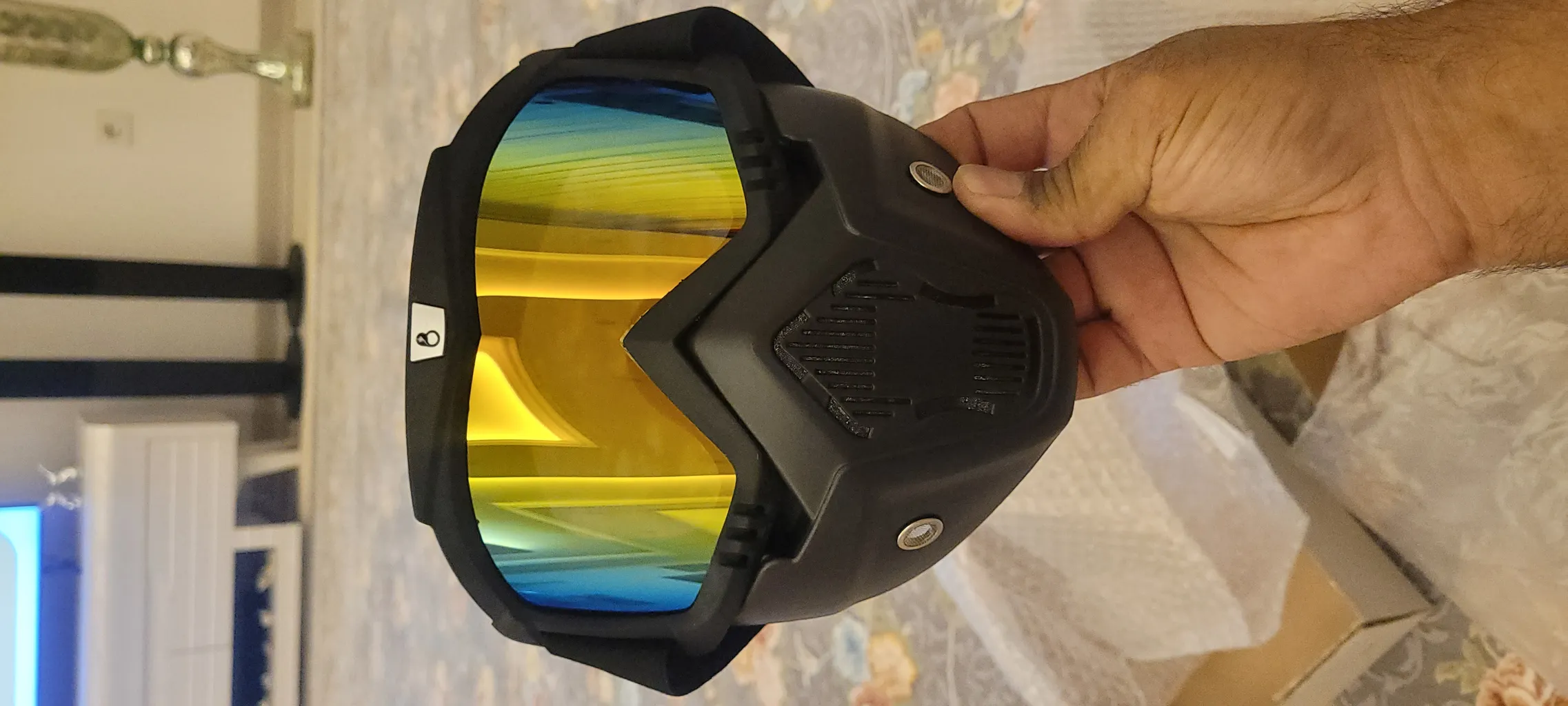 محمد آلبوبیری : Goggle mask ؛ به نظر من خوب بود نثبت به قیمتش یه خورده ضعیف هست میخواستم قر بزنم ولی بعد فکر کردم من یه عینک دودی نه چندان خوب رو خریدم ۴۰۰ اونوقت عینک و ماسک نیارزه... کلا خوبه راضی هستم و پیشنهاد میکنم
