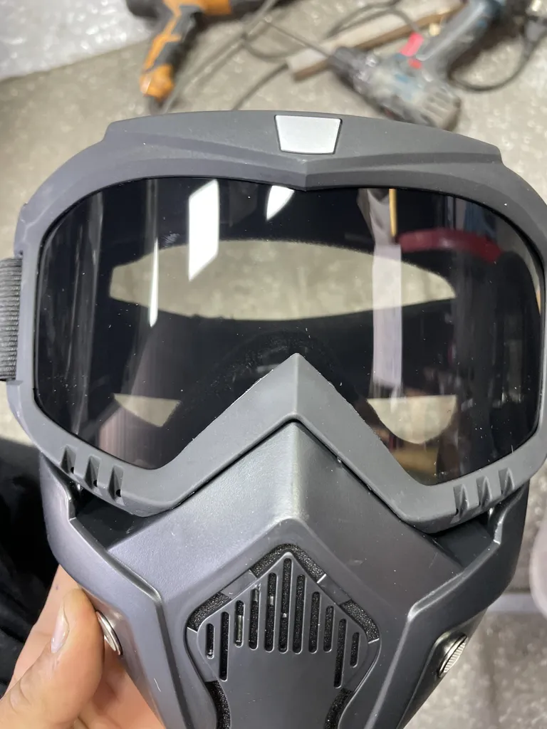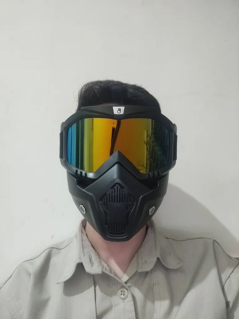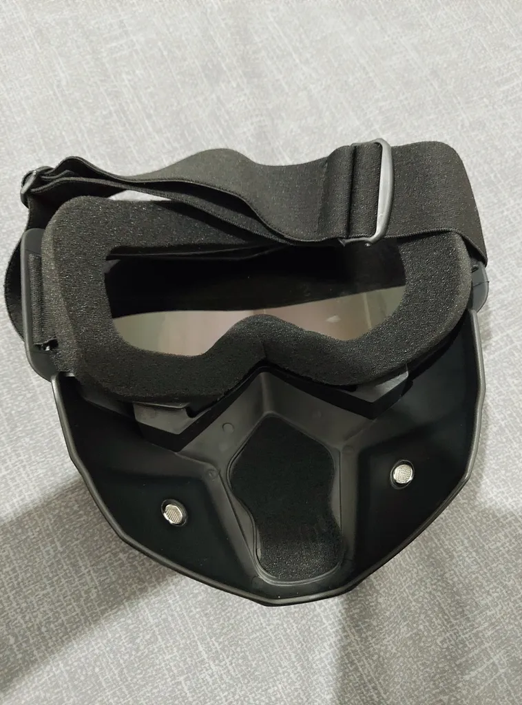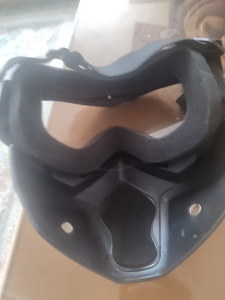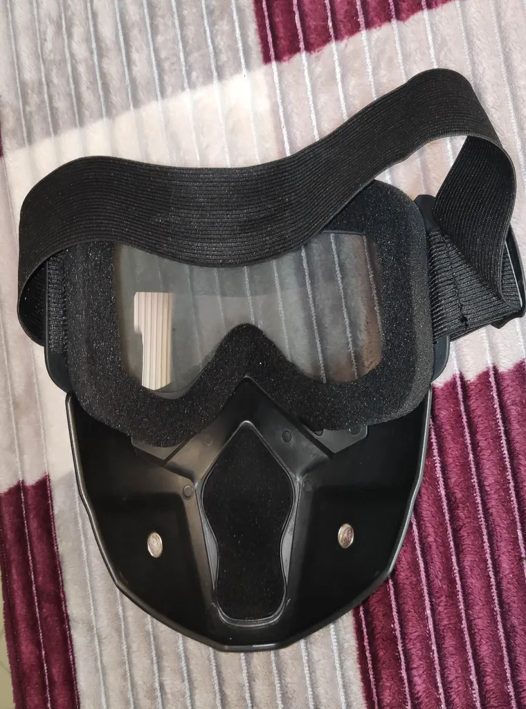 فرهاد رسولی : ماسک موتورسواری ؛ سلام این ماسک برا موتورسواری عالی هستش و مانع ورود گردوخاک به چشم میشه مخصوصا الان که داریم میریم به فصل سرما خیلی بدرد میخوره اما دوستانی که میخوان این ماسکو بخرن دقت کنن به هیچ عنوان رنگ مشکی سفارش ندین چون طلقش یه جوریه که اصلا نمیشه بیرونو دید مناسب جاهای کویری و کلا افتابی هستش یعنی میتونی بزنی و جوشکاری انجام بدی من یه بار سفارش دادم اومد خوب بود بار دومم که سفارش دادم وقتی رسید به دستم طلقش کلا مشکی بود ونتونستم رو موتور بزنم میدان دیدو بشدت کاهش میده میخوام مرجوع کنم