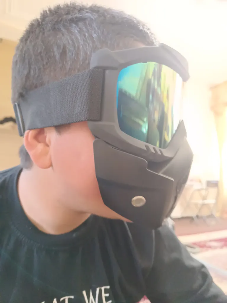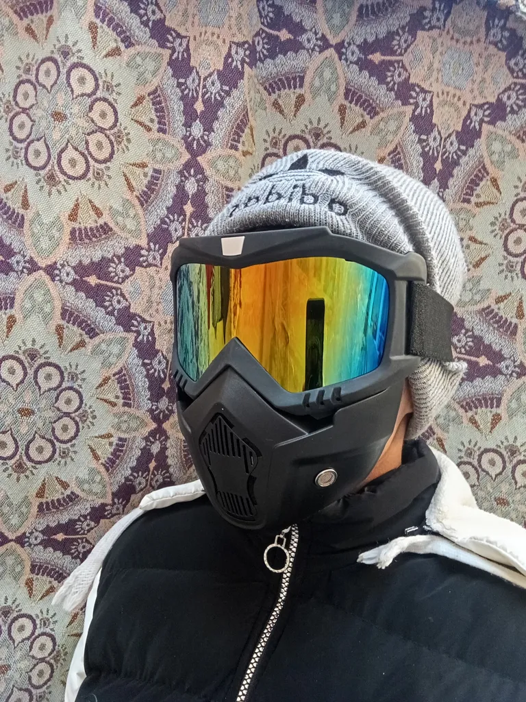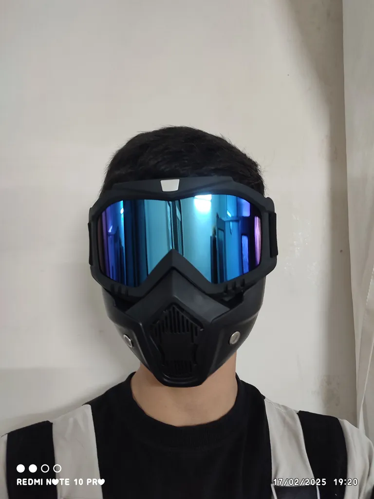 محمد آلبوبیری : Goggle mask ؛ به نظر من خوب بود نثبت به قیمتش یه خورده ضعیف هست میخواستم قر بزنم ولی بعد فکر کردم من یه عینک دودی نه چندان خوب رو خریدم ۴۰۰ اونوقت عینک و ماسک نیارزه... کلا خوبه راضی هستم و پیشنهاد میکنم