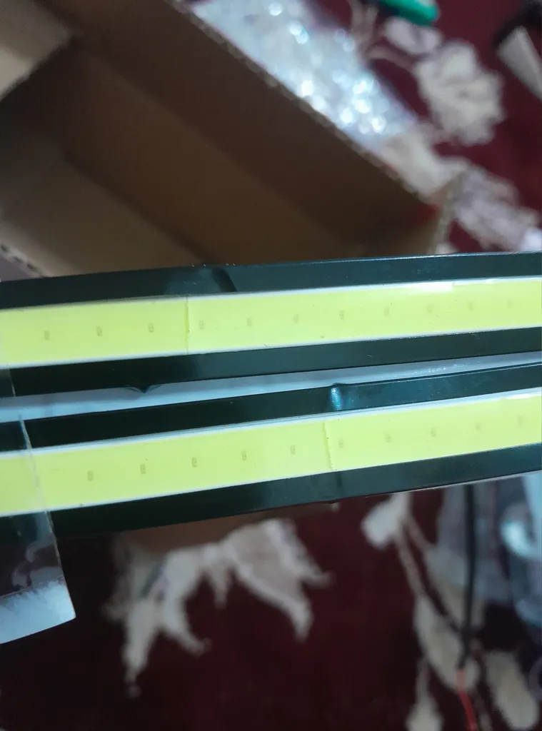 سلام وقتتون بخیر و نیکی ، چون نورش سفید یخی بود ، و من برای پشت موتور میخواستم استفاده کنم ، یک تلق قرمز رنگ رو سه لایه بریدم و با چسب چسبوندم ، و چون باید برق مصرفی اش ، باید تثبیت شده باشه یک ماژول هم سر راهش قرار دادم