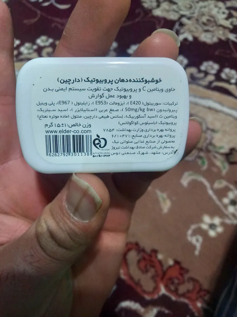 مجید ترک : قرص خوش بو کننده ؛ بسته اش خوب بود پلمپ، ۴۴تا دونه داخلش بود و اینکه ماندگارش زیاد نیست فقط در حدی که دهن رو کمی خوش بو کنه من لاکتوگام هم دارم لاکتوگام خیلی بهتر وبا کیفیت تره این فقط تعدادش زیاده کیفیتش به پای لاکتوگام نمیرسه تاریخ تولیدشم ۲۰۲۳/۱۲هستش انقضاش هم۲۰۲۵/۱۲