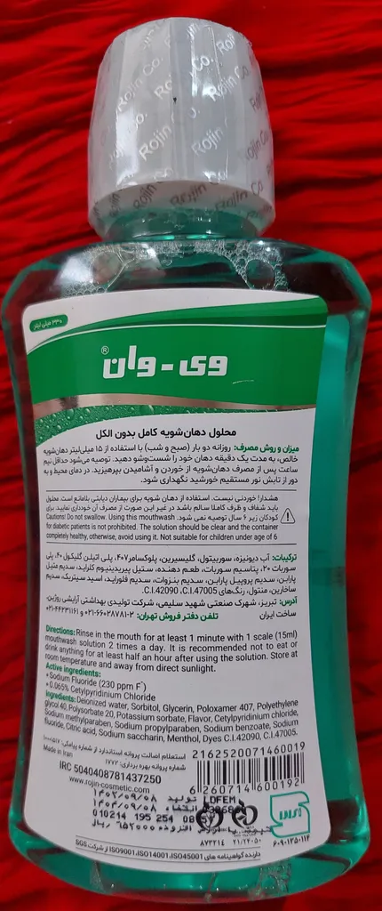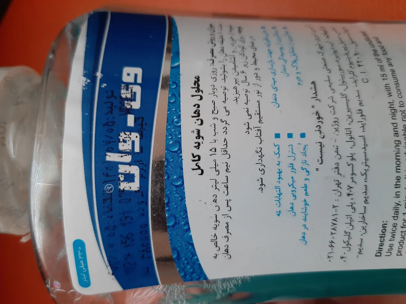 خریدار بدون نام : بدرد نخور دهان شویه ؛ به شدت بی کیفیت.... با ذرات معلق که بعد چند روز پیدا شد!!! برند ایرانی که به شدت سعی کرده ظاهرش رو خارجی کنه. با قسمت ایرانی بودنش کاری ندارم اما این ظاهر سازی مشخص که مشکل داره. خلاصه نخرید من دو مدلش رو تست کردم هر دو تا افتضاح و ذرات معلق شبیه روغن تو هر دو پیدا میشه که به مرور بیشترم میشه .... عکسی که گذاشتم هم کدر شدنش مشخصه. نکته مهم تر اینکه حتی دوز فلوراید رو هم ننوشته