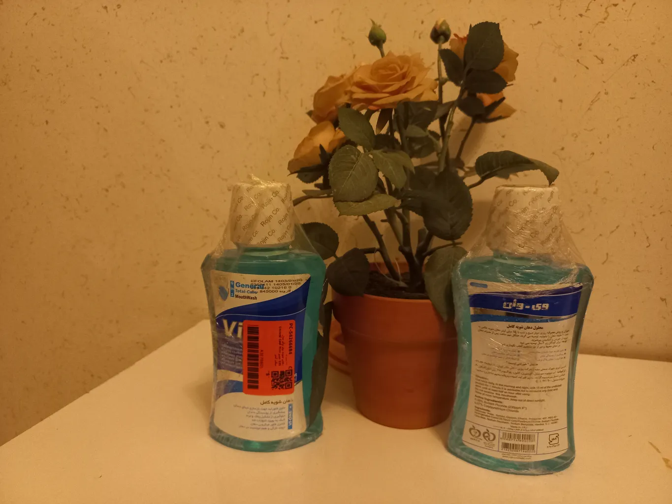 فاطمه محمدی : دهان شویه ؛ من از این دهان شویه دو تا خریدم؛ یکیش ک دم دستمه و اون یکی رو هنوز باز نکردم؛ براتون عکسش رو میذارم