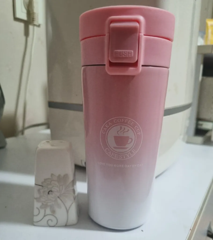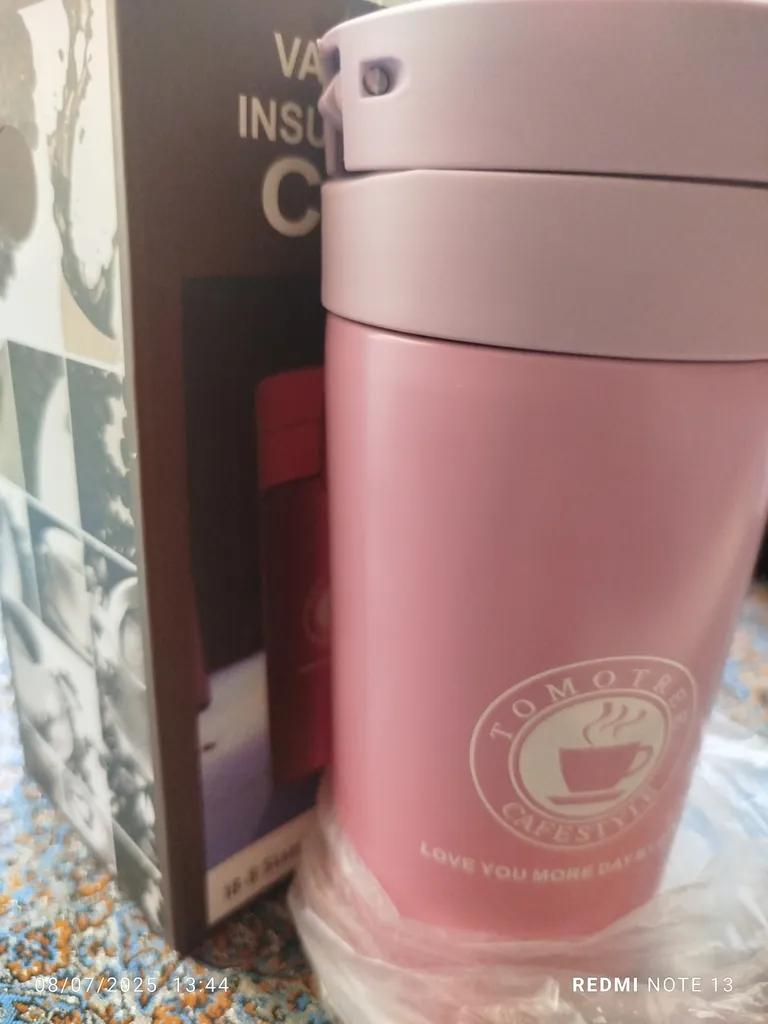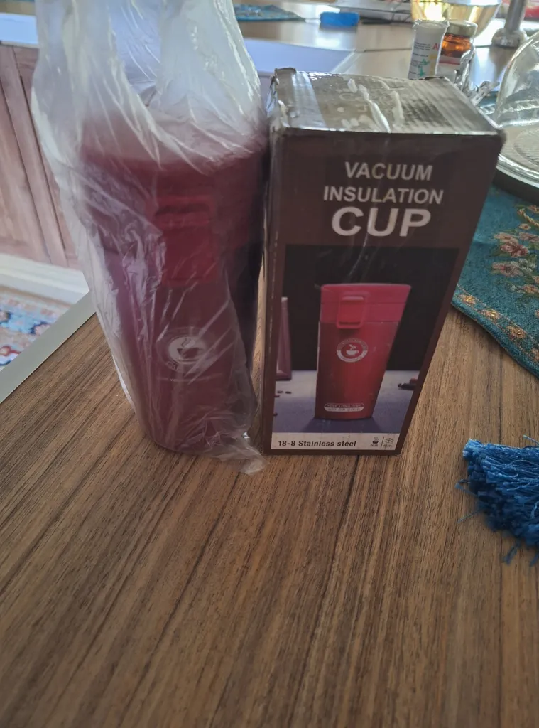 خریدار بدون نام : راضیم ؛ من دوتارنگ ازدوتافروشگاه متفاوت سفارش دادم ومدل جعبه هاشون فرق میکردولی کیفیت مثل هم بودظاهرأ،هردوخیلی قشنگ وکاربردین،بدنه کمی زبره که تودست لیزنخوره،اندازش کمی ازلیوان معمولی بزرگتره وگزینهٔ مناسبی برای نوشیدنی هنگام سفریاپیک نیک ویادرمحل کارهست ،خوشم اومددرکل،ممنونم