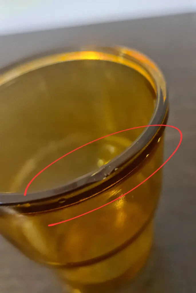 چند لکه چسب در جدار بالایی لیوان بود وگرنه زرح جنس عالی و هردوطرف لیوان کارشده عکس گذاشتم میتونین ببینین