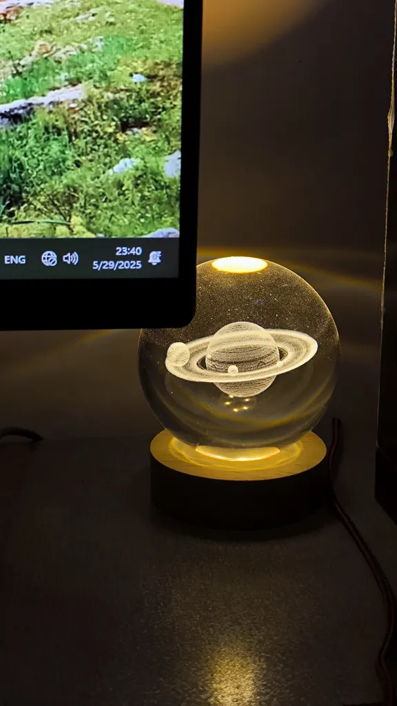 خیلی وقت بود که دلم میخواست این گوی رو بگیرم و بالاخره خریدنش. انصافا خیلی خوشگله و زیبایی منحصر به فردی داره و میز کارم رو چند برابر زیباتر کرده. ایراد خاصی نمیتونم بهش بگیرم فقط به این نکات توجه داشته باشید که وزنش نسبتا زیاده و حین جابجایی مراقب باشید نیفته از دستتون که خطرناکه